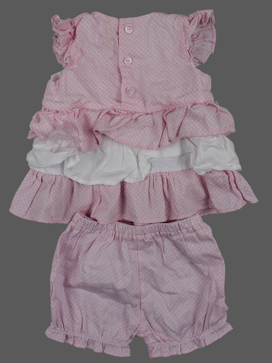 Розовый/белый. Есть загрязнения, местами пожелтела ткань.