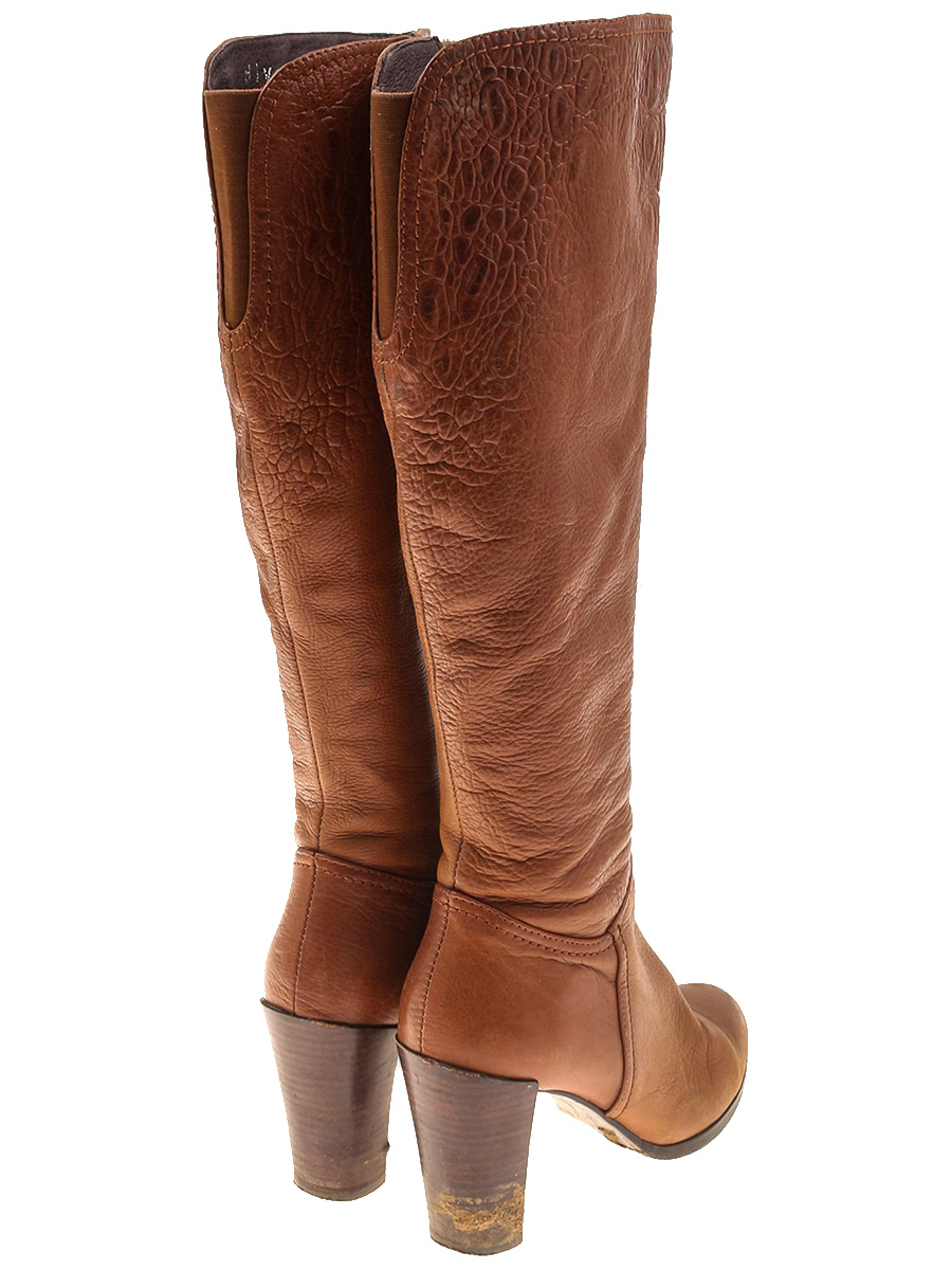 Есть небольшие потертости материала, загрязнения, заломы. Немного деформированы набойки .С внутренней стороны каблука отклеился материал. Маркировка на изделии 35. Размер указан на основании замеров.