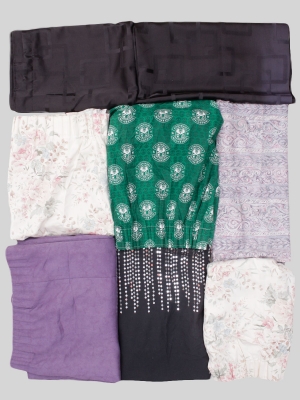Шторы бежевые - 2 шт., черные - 2 шт., сиреневая - 1 шт., серо-розовая - 1 шт., зеленая - 1 шт., черная с паетками - 1 шт.