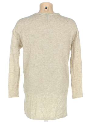 Маркировка на изделии отсутствует. Размер указан на основании замеров. На рукаве распускается нить по шву, загрязнения в нескольких местах.
