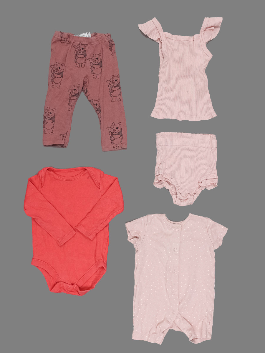 Ткань немного вытянулась и выцвела, катышки, пятнышко . Шорты 1 шт., боди 2 шт., майка 1 шт., брюки 1 шт.