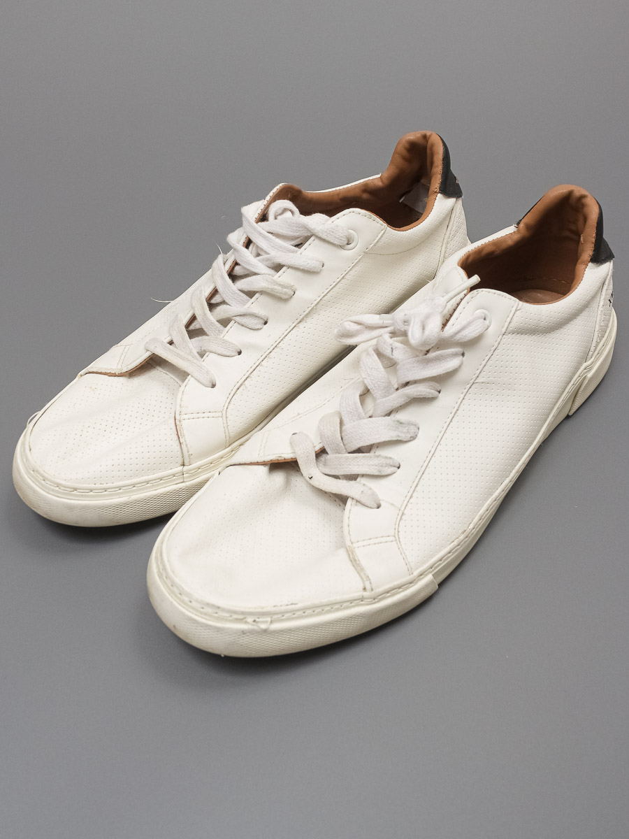 Есть износ подошвы. Загрязнения. Распускается строчка. Потёртости покрытия.