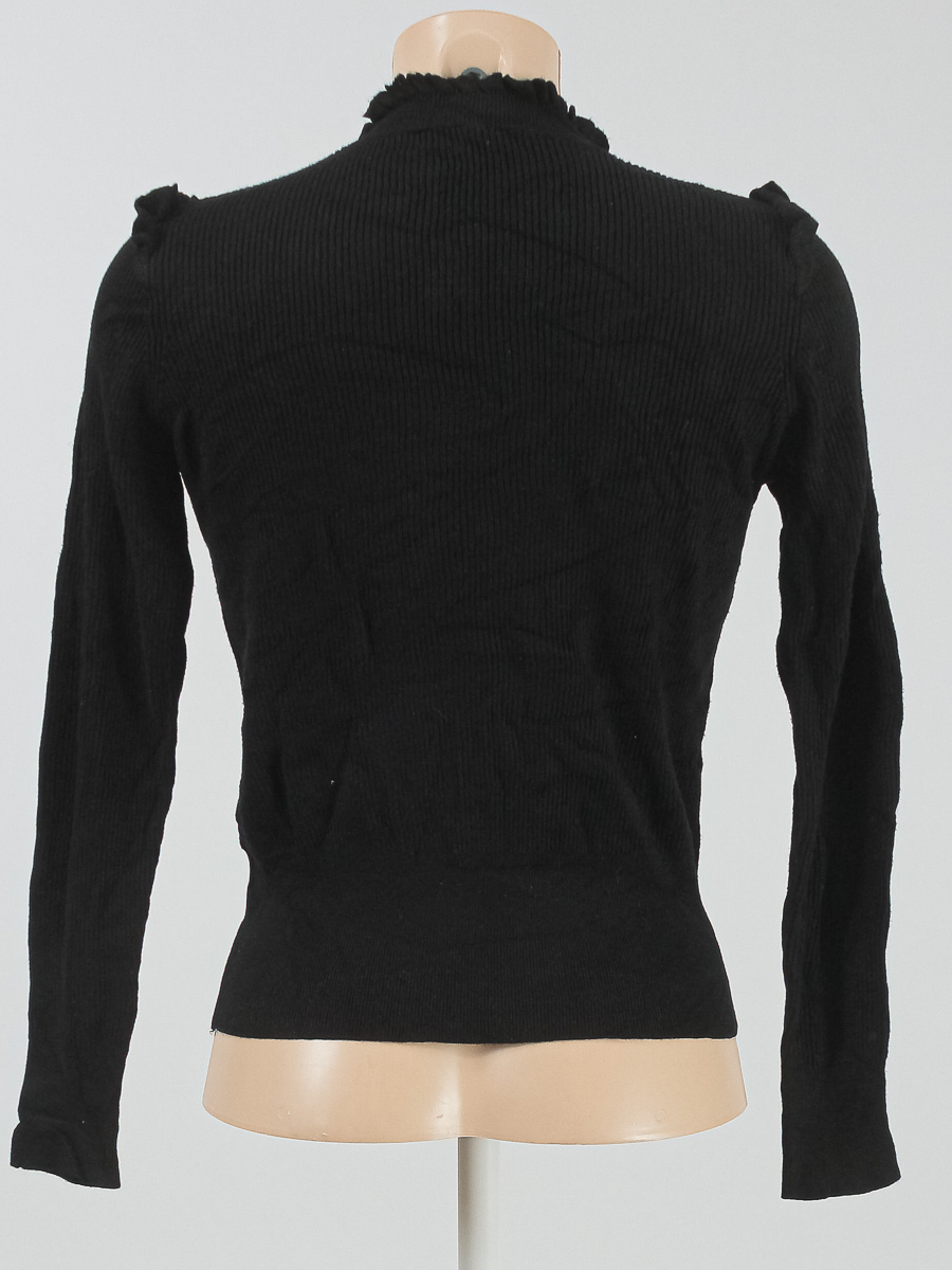 Есть катышки, ткань местами лоснится, незначительно вытянулась.