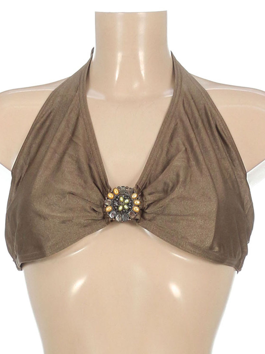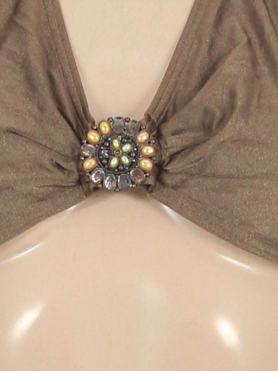 Маркировка на изделии отсутствует. Размер указан на основании замеров. На элементе декора отпали бусы. Длина по спине регулируется. Есть зацепки.