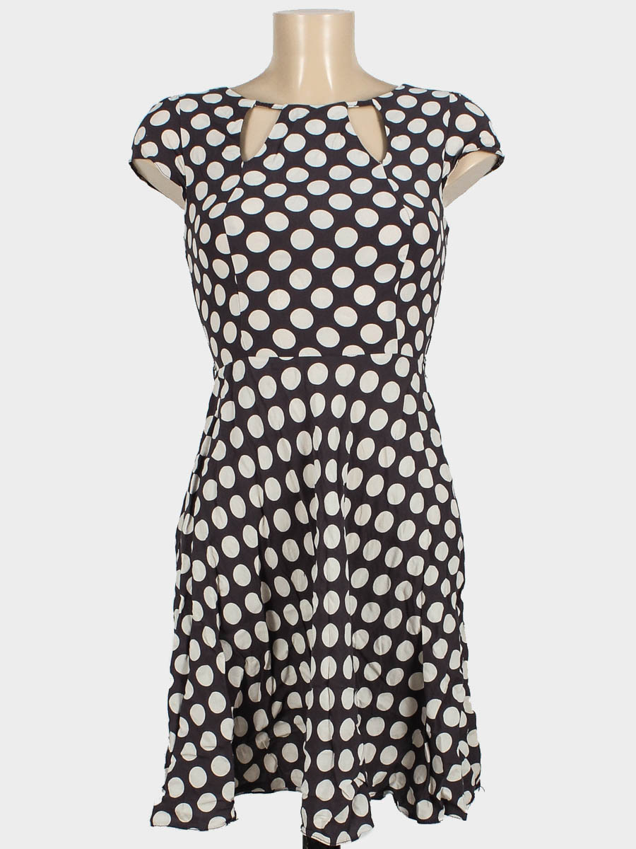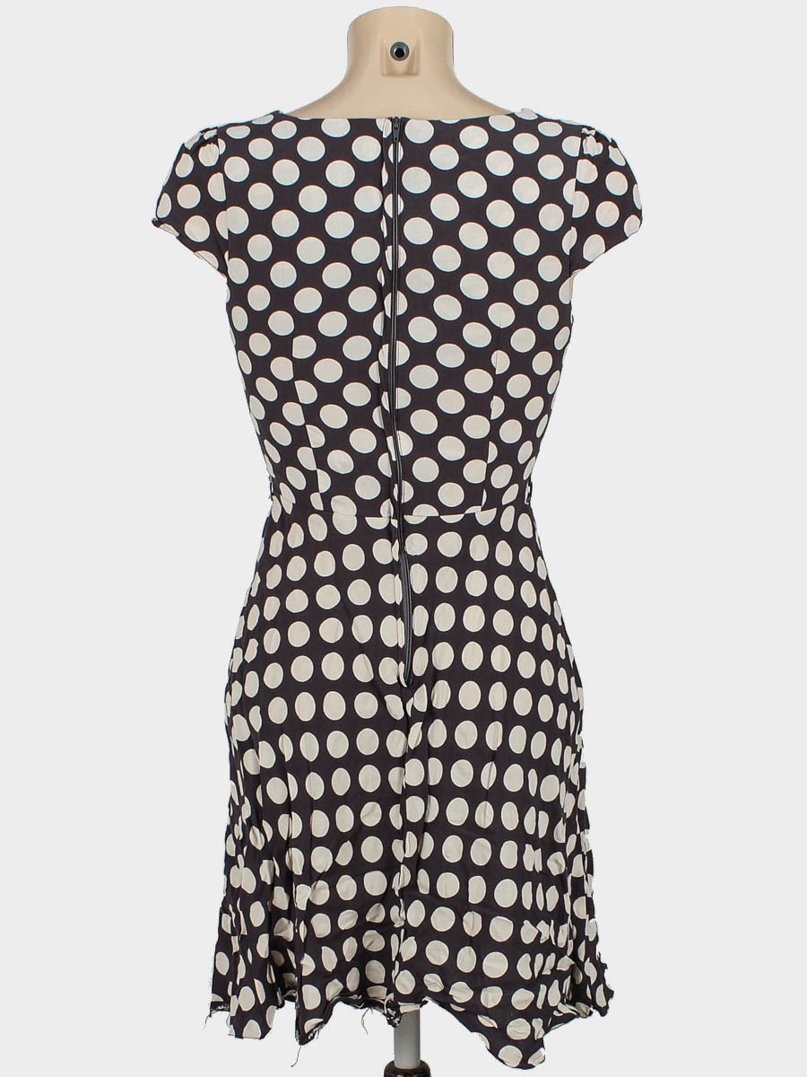 Есть небольшие повреждения материала в нескольких местах (дырочки по шву) . Есть затяжки. Ткань немного вытянулась. В комплекте нет пояса.
