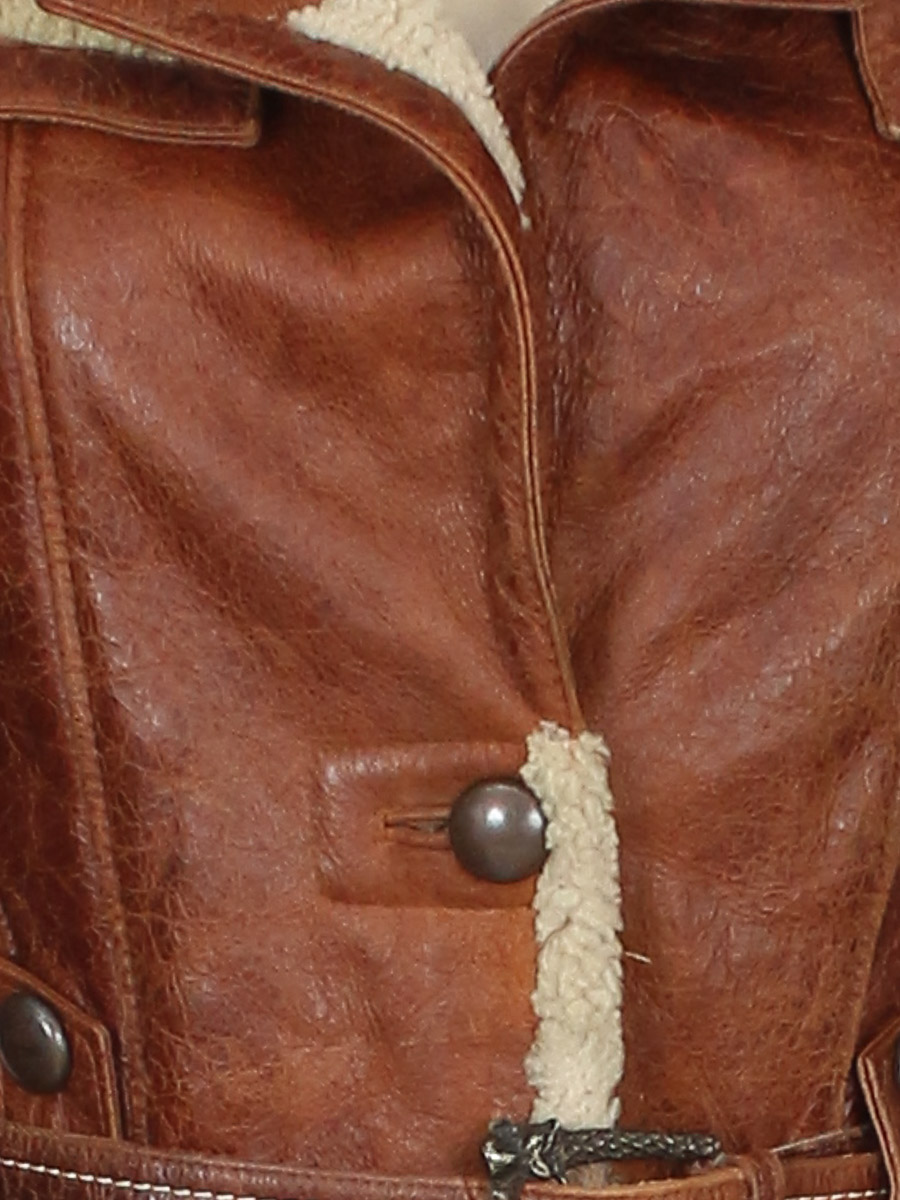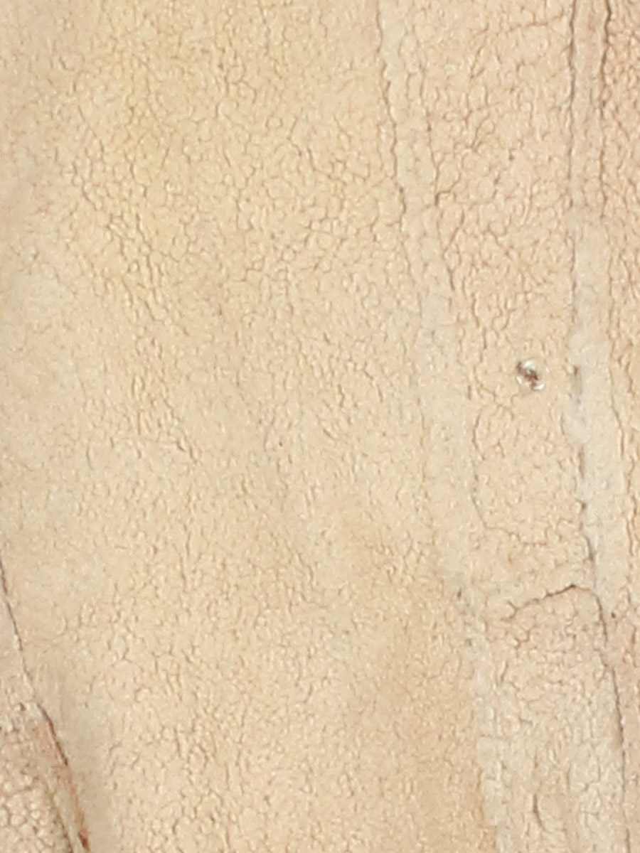 Возможно натуральная кожа. Пришит рукав вручную чёрными нитками. Есть потёртости материала. Загрязнения.