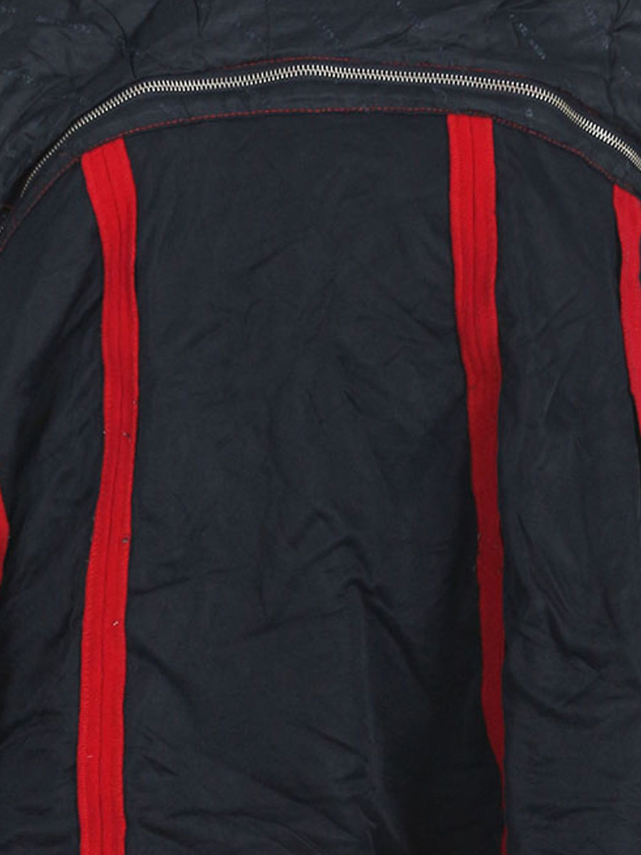 Посередине молния, отстегивается, можно носить как жакет. Есть катышки, небольшие поверхностные загрязнения, ткань немного потускнела. Спереди около пуговицы маленькая дырочка.