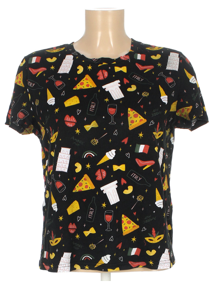 Ткань местами вытянулась, в области подмышек потускнела.