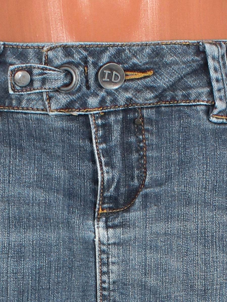 Ткань местами выцвела. Есть потертость материала по швам. С внутренней стороны есть катышки (карманы). На карманах немного распускается декоративная строчка.