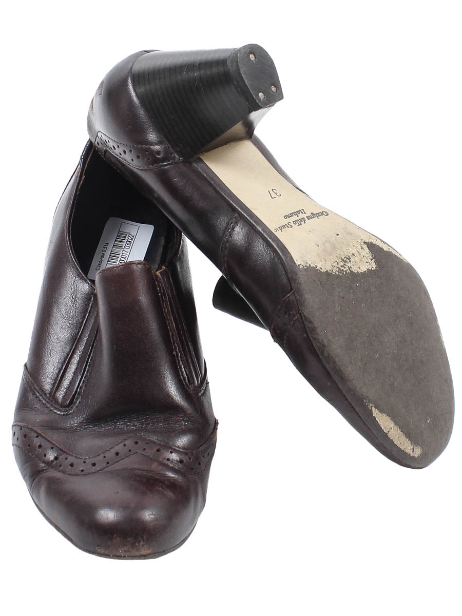 Есть износ подошвы. Есть царапины и потёртости материала.