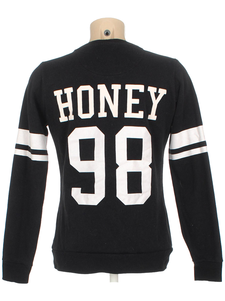 С начесом. Есть катышки, ткань потускнела, сбоку дырочка по шву, трескается краса на белых полосах на рукавах.