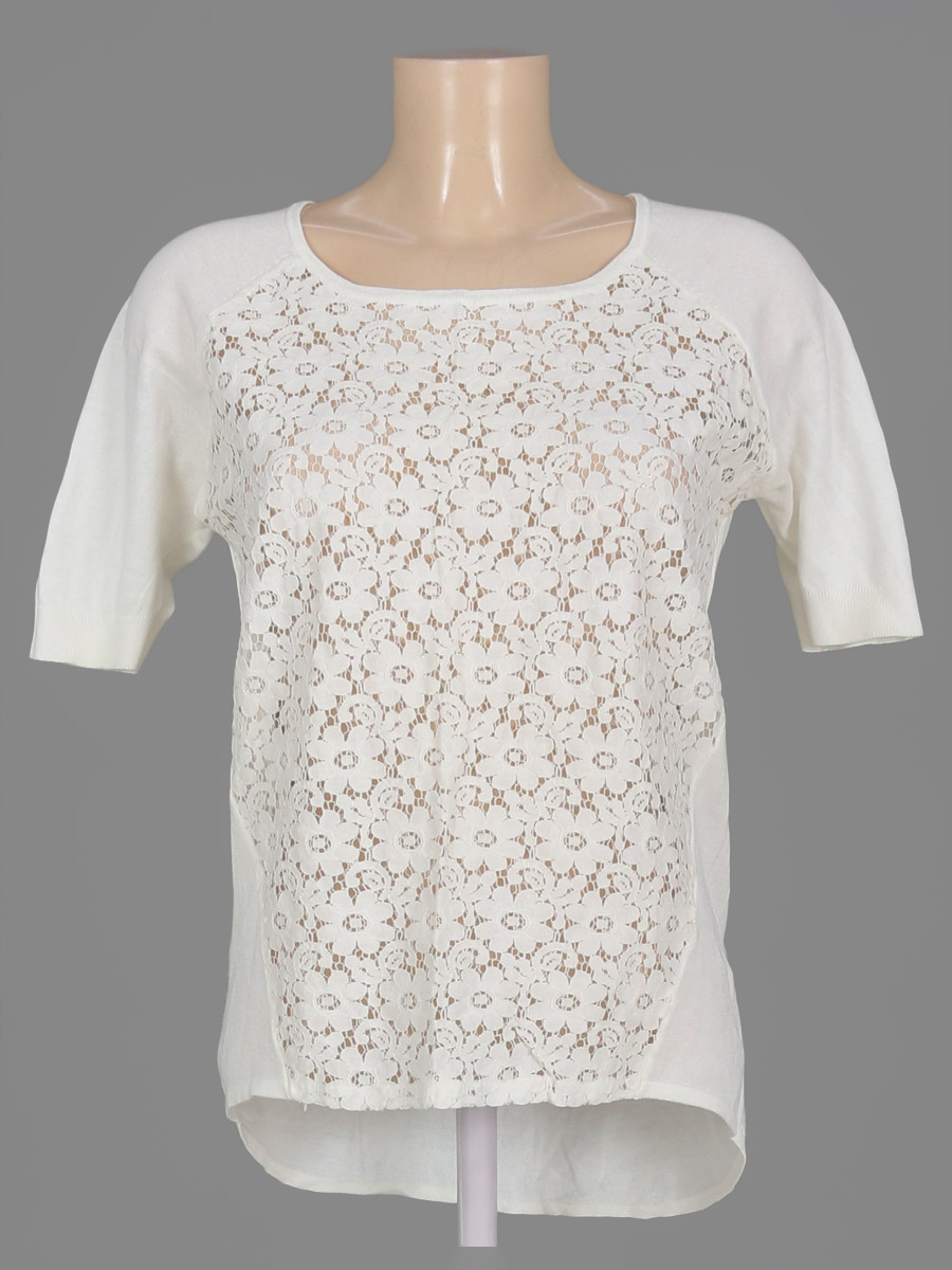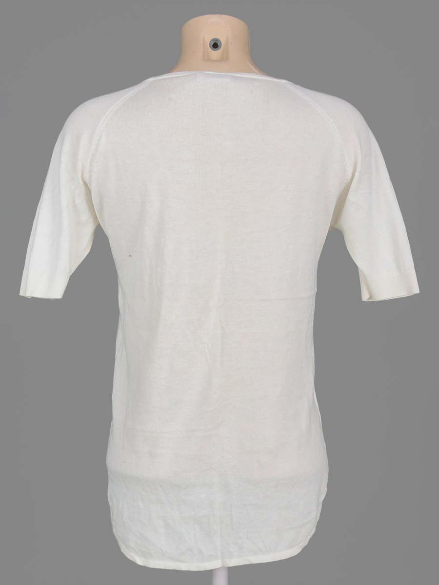 Маркировка на изделии 40. Замер рукава указан от горловины. Есть катышки, дырочка в области подмышки, ткань местами немного вытянулась.