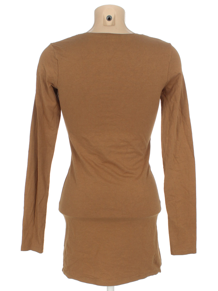 Есть мелкие катышки, ткань немного потускнела, местами вытянулась, по низу распускается строчка по шву. Изнутри на вороте загрязнение от ручки.
