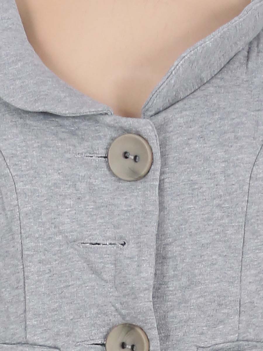 Ткань немного вытянулась. Отсутствуют пуговицы на застёжке.
