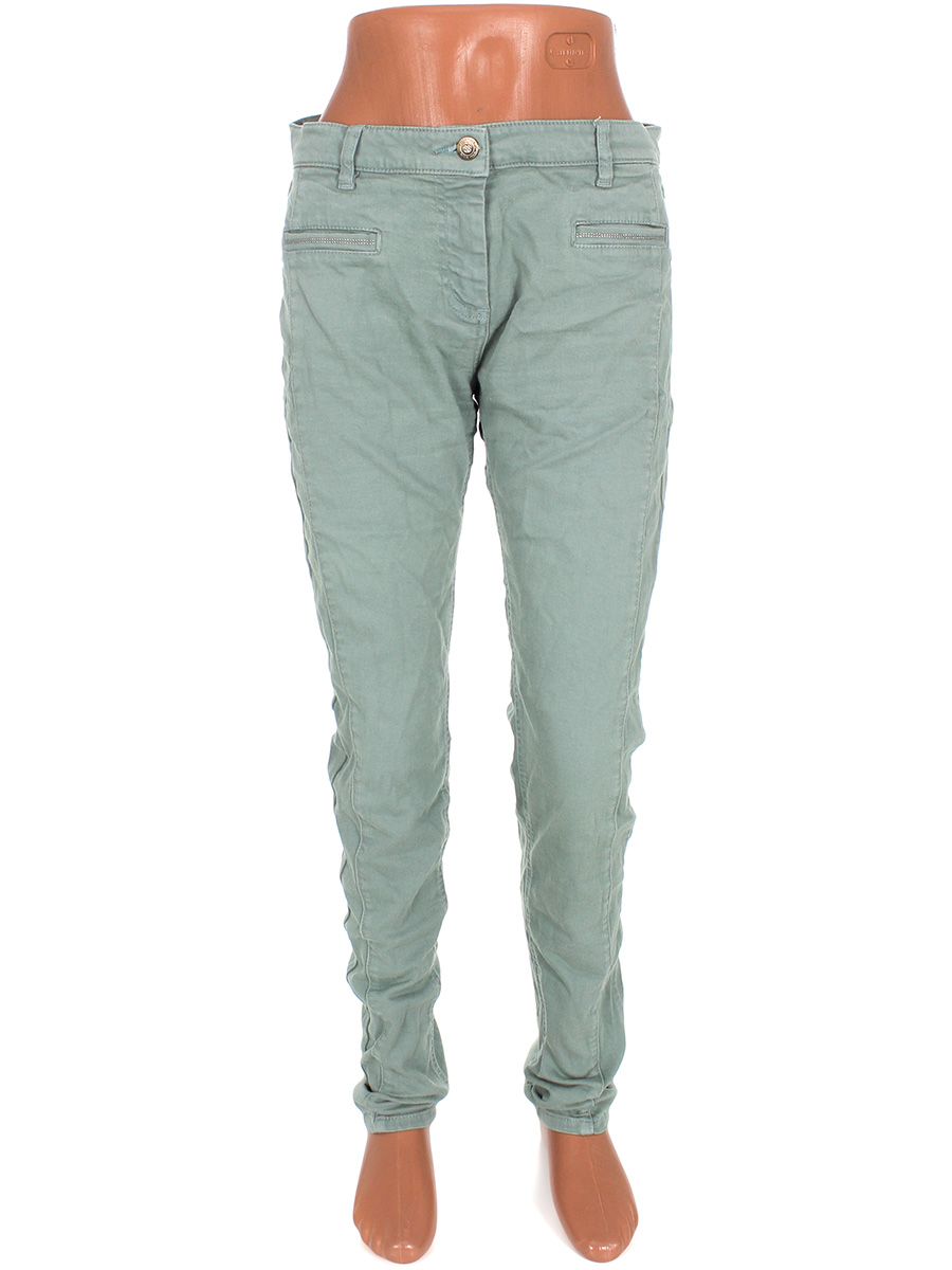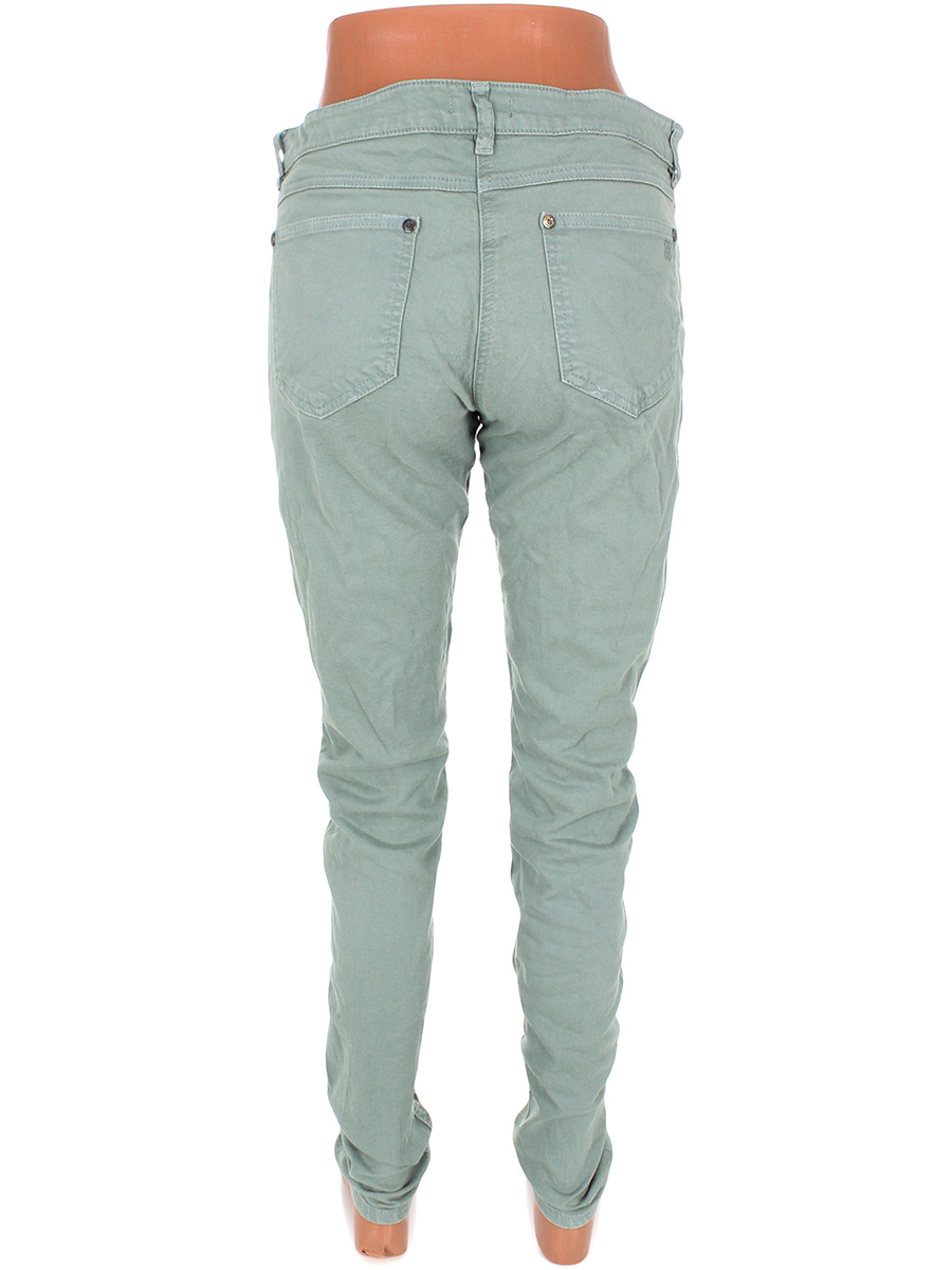 Маркировка на изделии 40. Размер указан на основании замеров. Зелено-голубой. Есть мелкие катышки, ткань потускнела/выцвела, местами немного вытянулась, на задних карманах распускается строчка по шву.