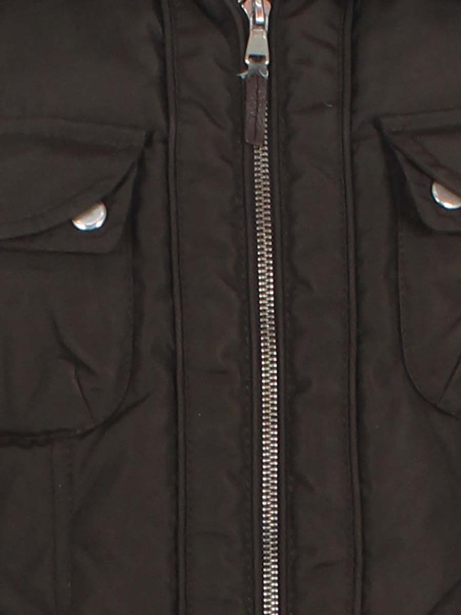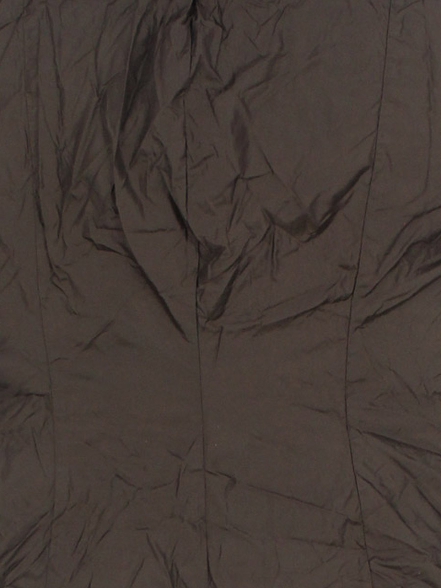 Есть поверхностные загрязнения, ткань местами лоснится, местами слежался наполнитель. Потертости материала на пуллере.