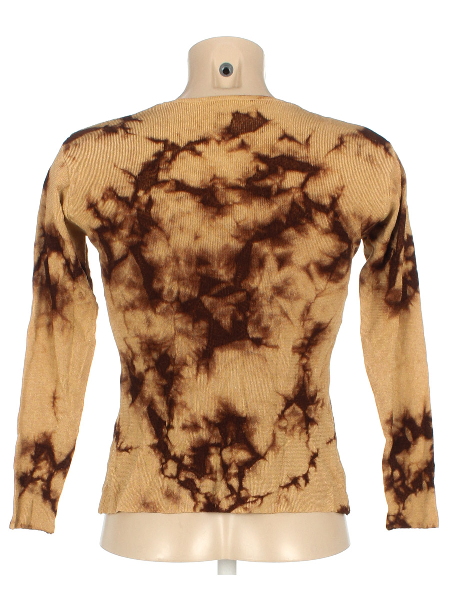 Маркировка на изделии отсутствует. Размер указан на основании замеров. ткань местами немного вытянулась, на манжете расходится ткань по шву.