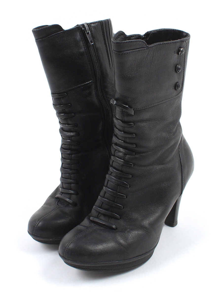 Маркировка на изделии 37. Размер указан на основании замеров. Есть загрязнения, заломы, небольшой износ подошвы, царапины, потертости материала, скалывается краска на бегунках, отклеилась стелька в одном ботинке.