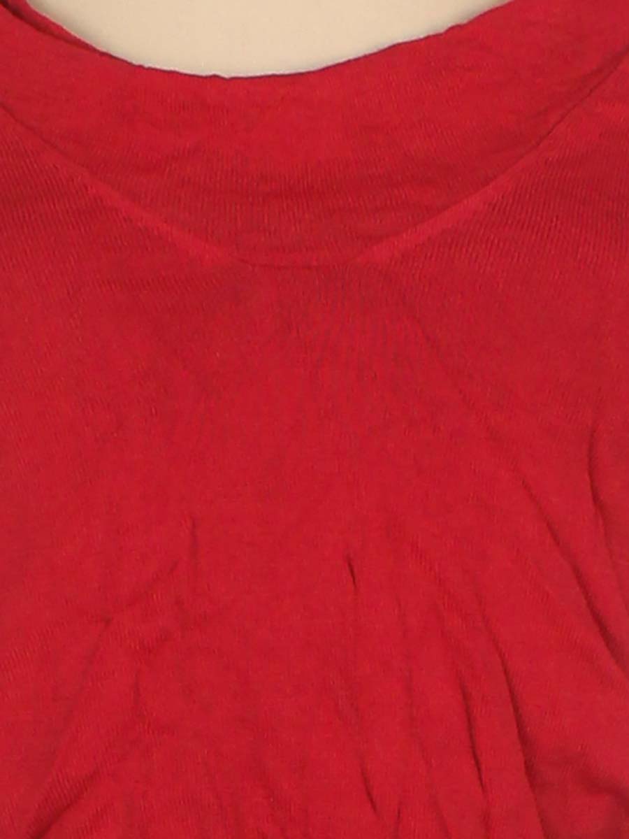 Незначительно вытянута ткань по швам ,местами лоснится. Есть затяжки, на рукаве маленькое пятнышко . Маркировка на изделии отсутствует. Размер указан на основании замеров.