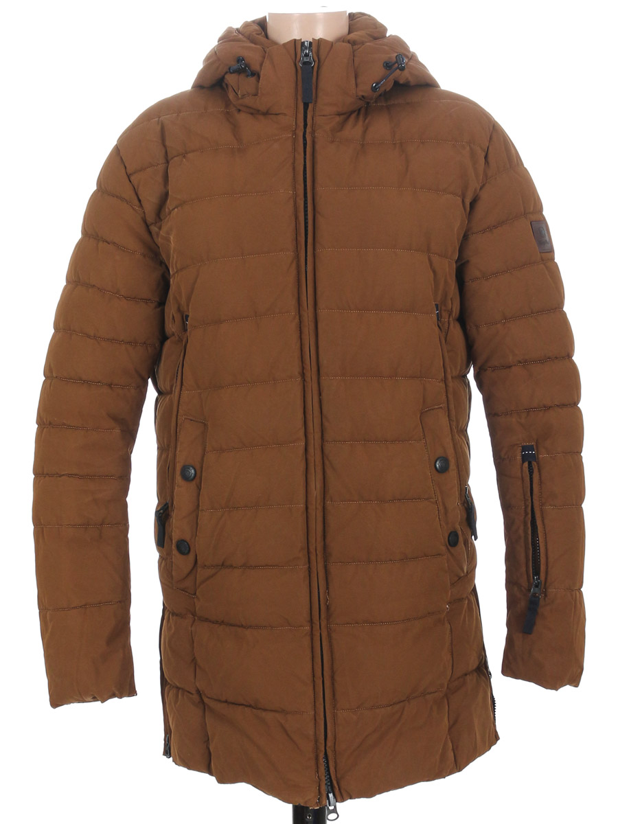 Маркировка 48. Есть дырочки на подкладочном материале по шву около кармана и около петельки. Есть поверхностные загрязнения, ткань местами лоснится, потертости материала на кармане, дырочка около кармана. Скалывается краска на бегунках. Сперели около молнии распускается строчка по шву. Слежался наполнитель.