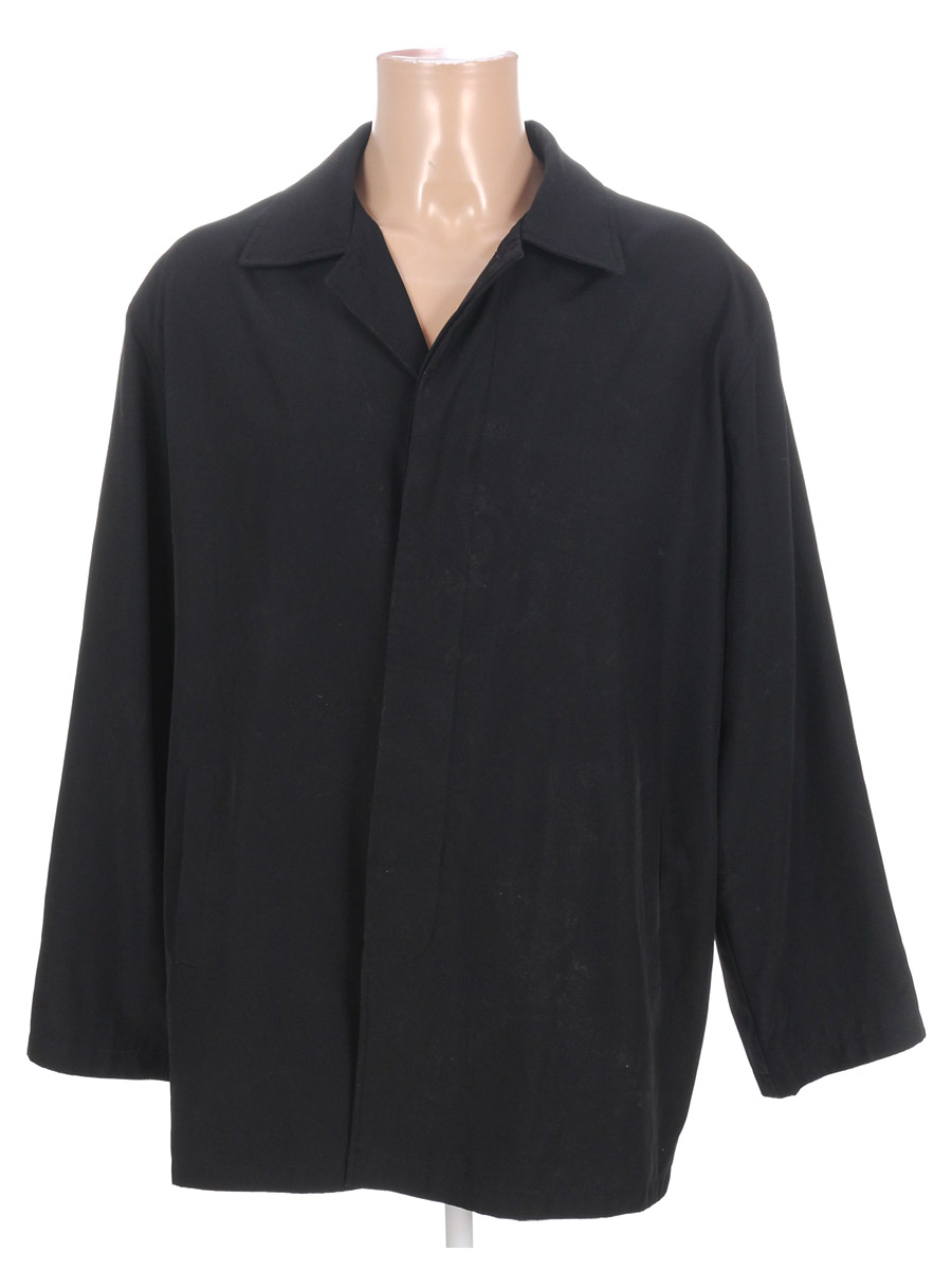 Маркировка на изделии отсутствует. Размер указан предположительно (58-60). Есть поверхностные загрязнения, ткань местами лоснится, слежался материал на подплечниках.