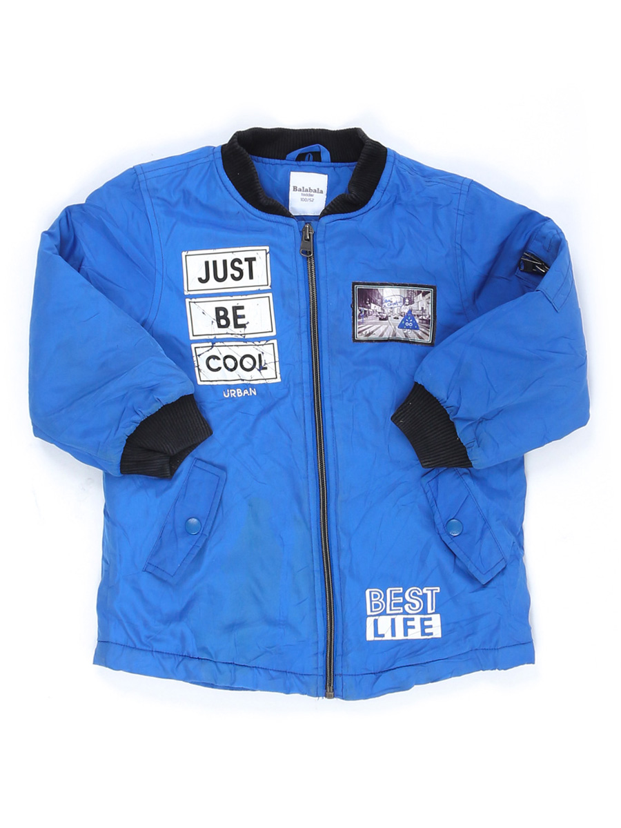 Потускнел цвет ворота и манжет. Трещины на рисунке. Небольшие загрязнения.