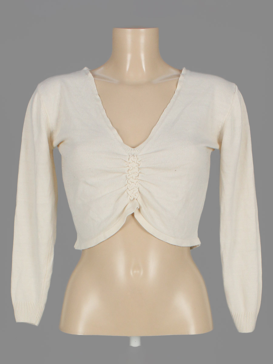 Незначительно вытянута ткань по швам. Есть мелкие катышки.