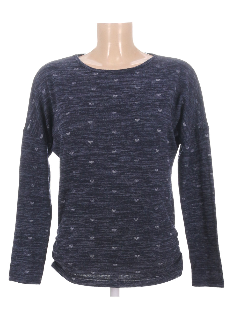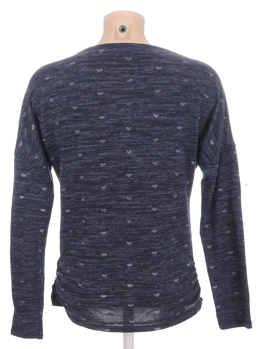 Маркировка на изделии отсутствует. Размер указан на основании замеров (44-46). На рукаве около шва есть дырочка. Есть катышки, ткань потускнела, местами вытянулась.