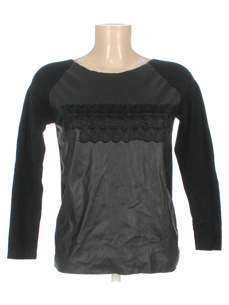 Маркировка на изделии отсутствует. Размер указан на основании замеров. Есть катышки, на воротниковой части изделия, по низу и в области подмышек повреждения материала (трескается). Ткань местами немного вытянута, лоснится.