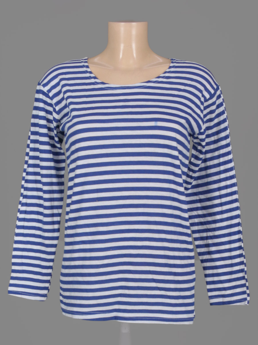 Маркировка на изделии отсутствует. Размер указан на основании замеров. Ткань немного вытянулась. Есть пятнышко спереди (возможно отстирается)