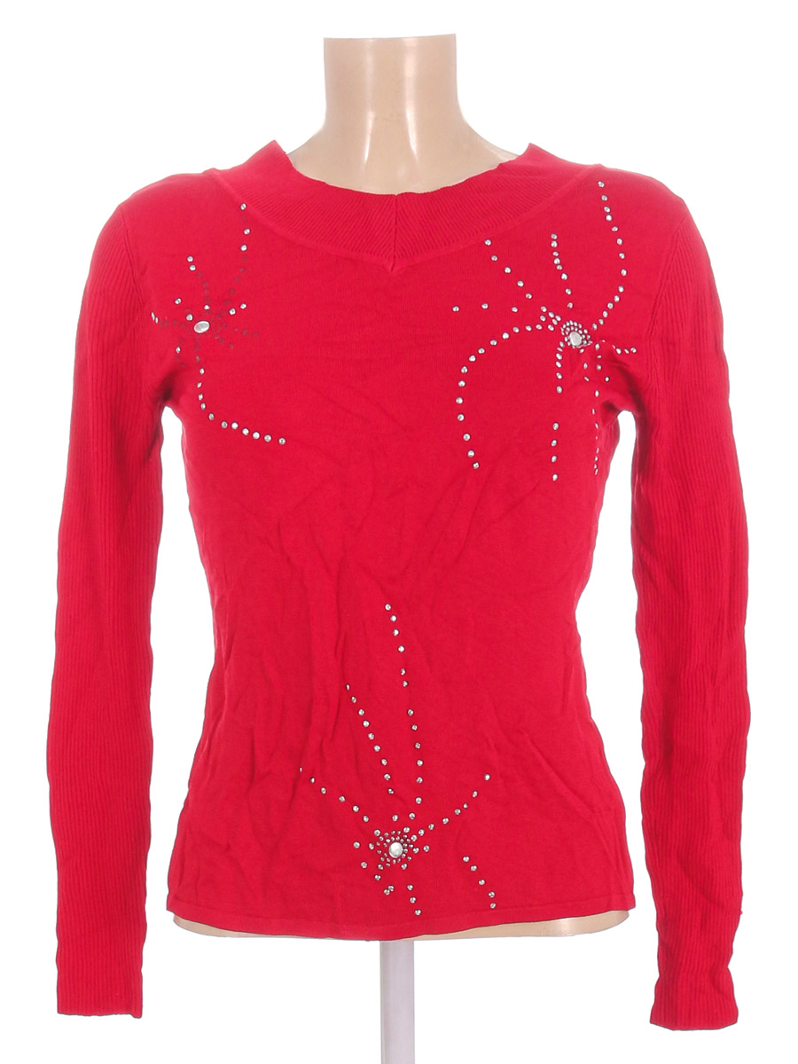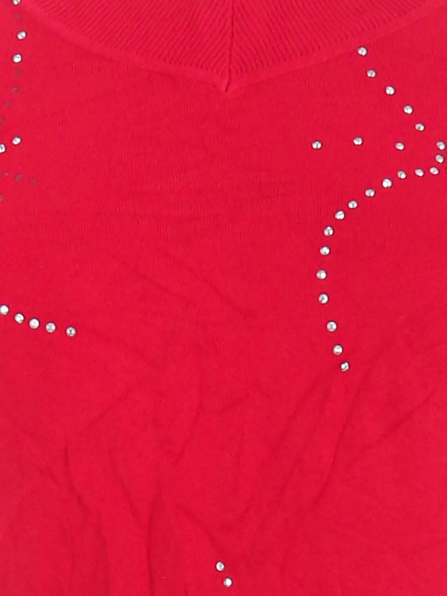 Маркировка на изделии отсутствует. Размер указан на основании замеров. Есть затяжка на рукаве, дырочка в области подмышки, отклеиваются стразы, ткань местами немного вытянулась.