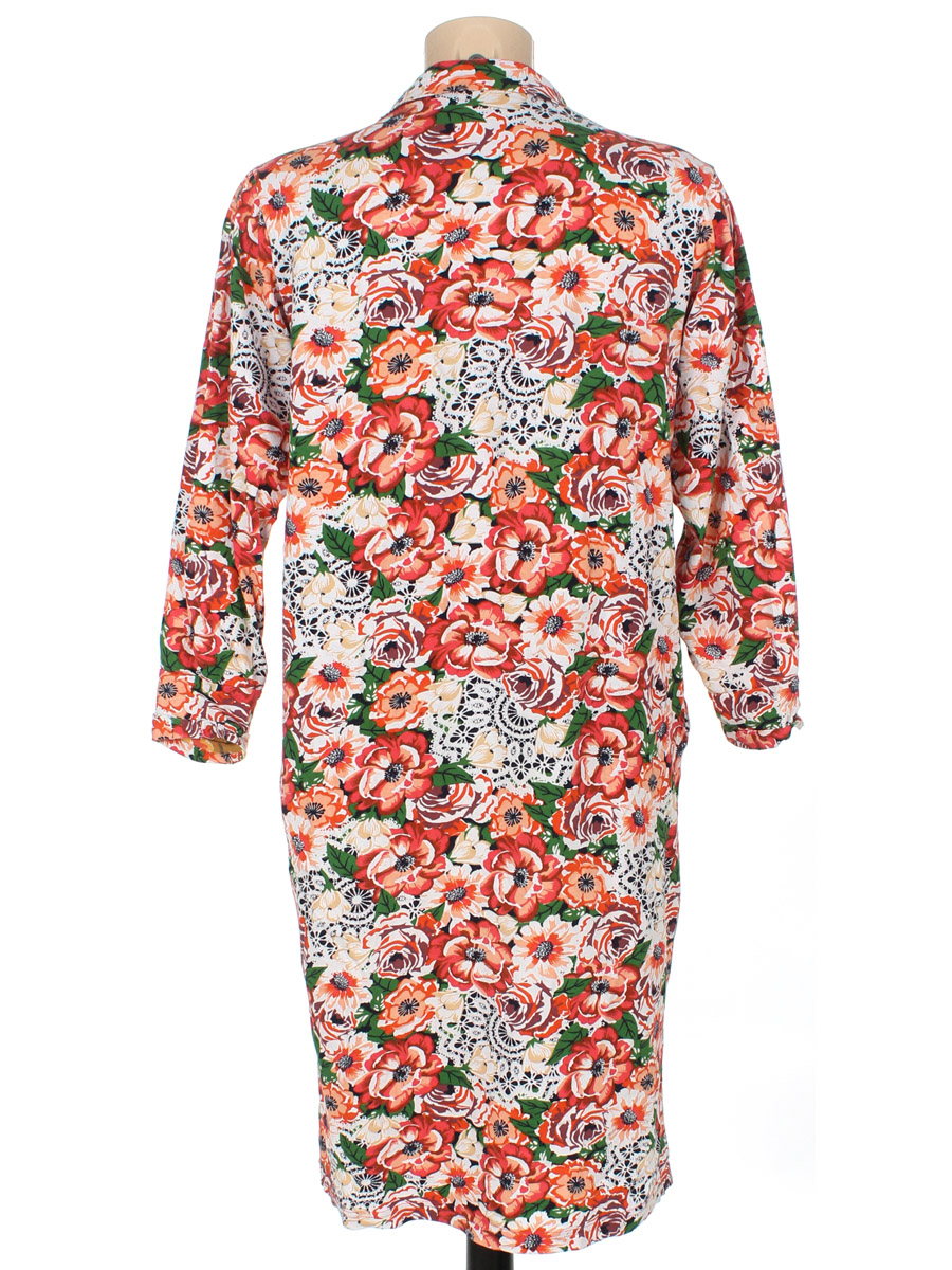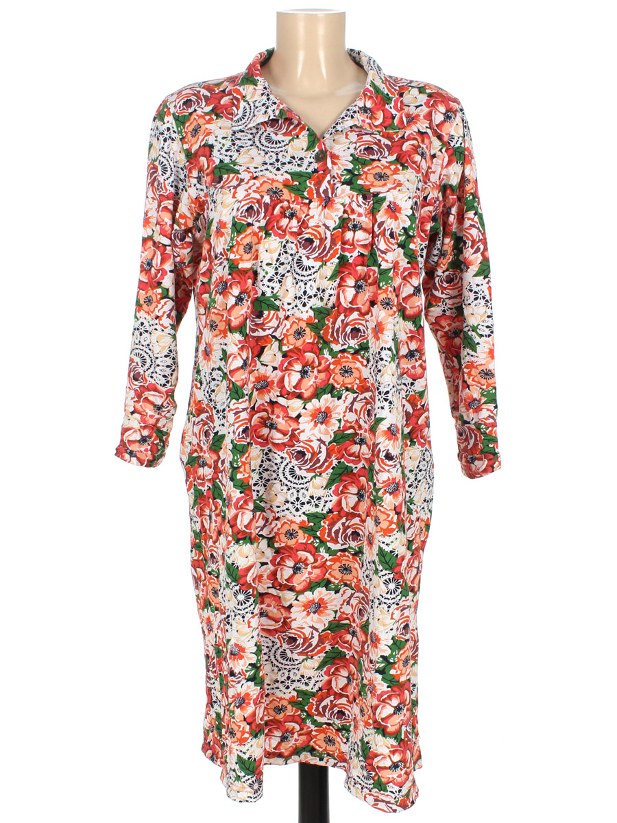 Маркировка на изделии отсутствует. Размер указан на основании замеров. Ткань немного вытянулась. По горловине немного распускается нить по шву. Подшиты рукава от руки.