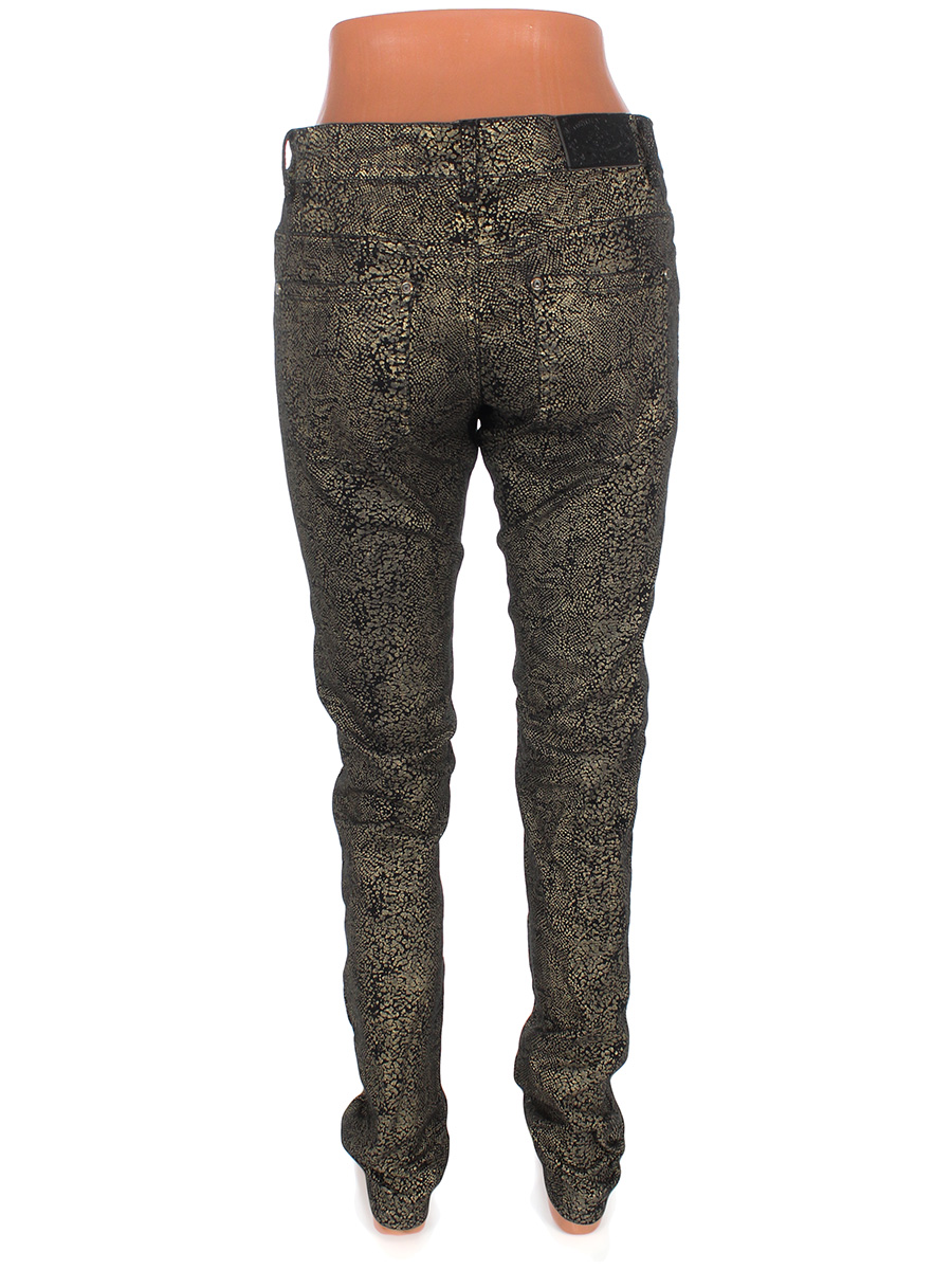 Маркировка на изделии 38. Размер указан на основании замеров. Черный-золотистый. Ткань местами незначительно вытянулась, есть потертости материала.