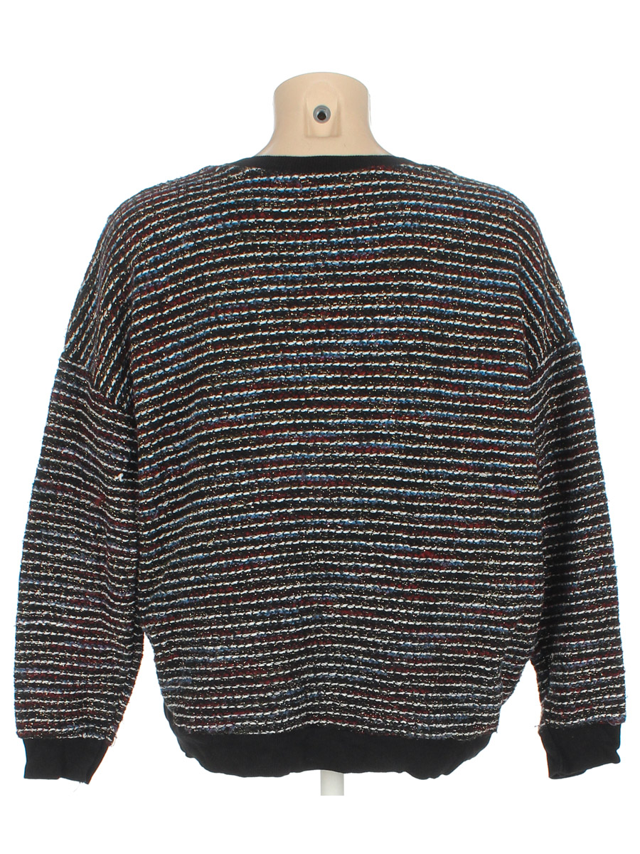 Маркировка на изделии отсутствует. Размер указан на основании замеров. Замер рукава указан от горловины. Свободный крой. Есть катышки, затяжки, ткань потускнела, местами вытянулась.