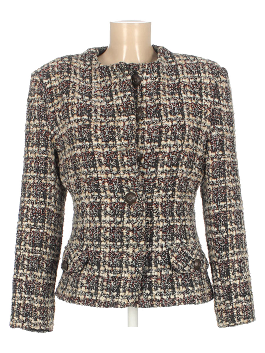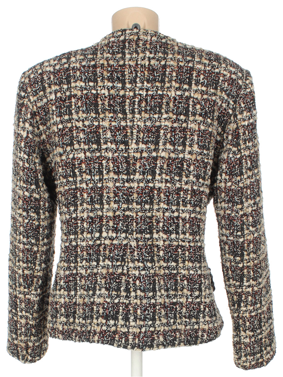 Маркировка на изделии 42. Размер указан на основании замеров. На подкладочном материале есть затяжки. Немного вытянулся шов. Есть немного катышек. По горловине пожелтела нашивка.
