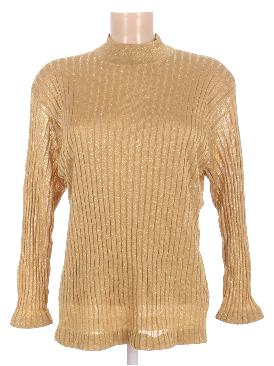 Маркировка 46. Золотистый оттенок. Замер рукава указан от горловины. Есть несколько затяжек, ткань местами немного вытянулась.