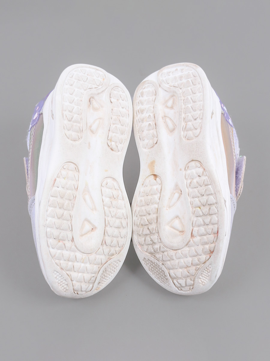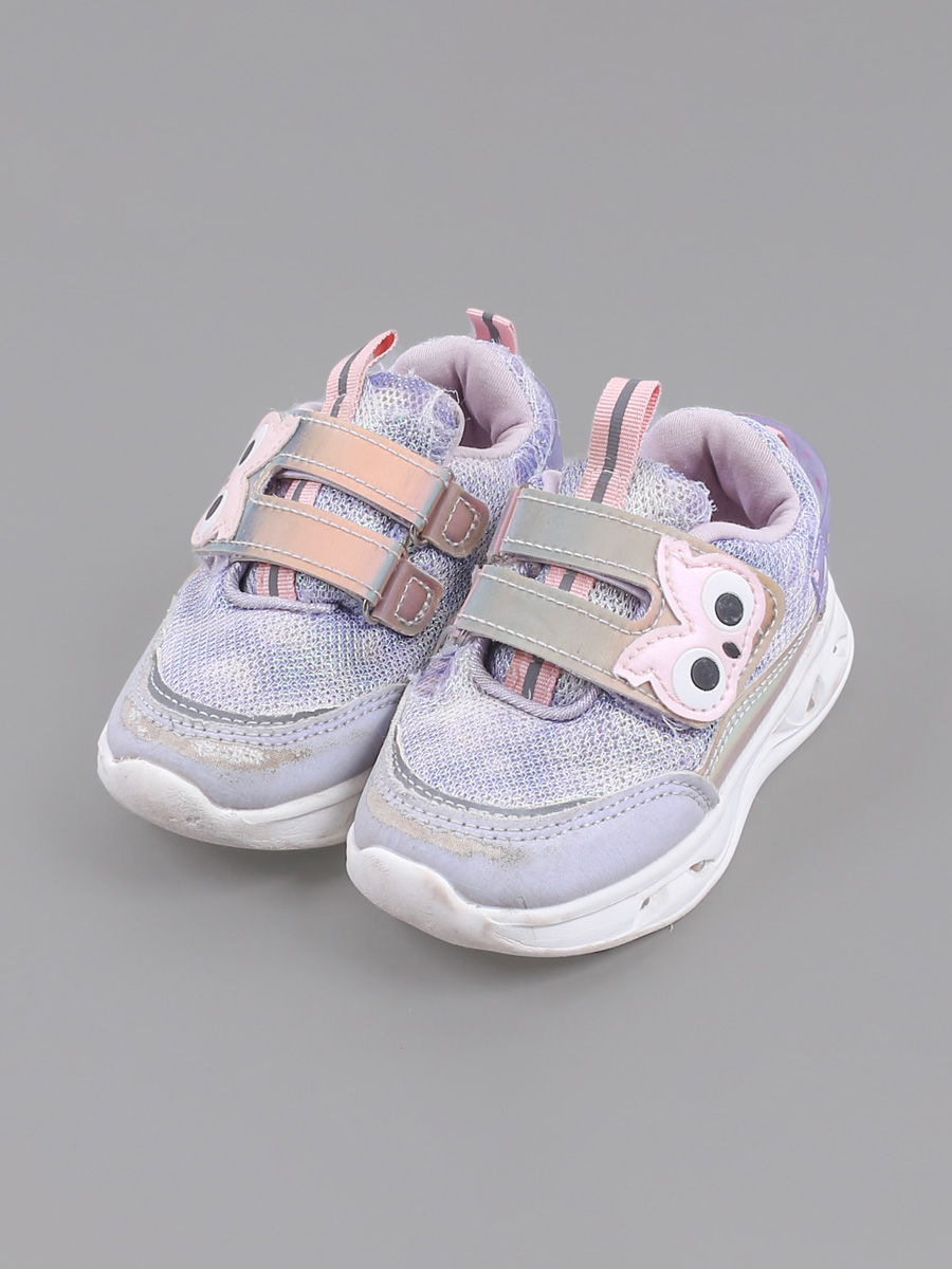 Местами стерлось покрытие спереди. Есть небольшие повреждения сетки на текстиле. Поверхностные загрязнения. На подошве есть световой элемент.