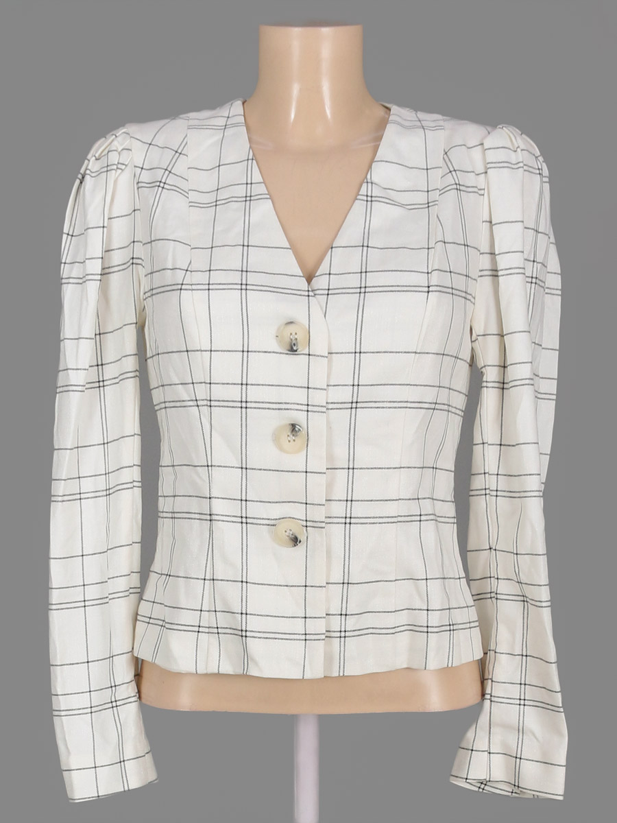 Маркировка 44, есть загрязнения на воротниковой части изделия.