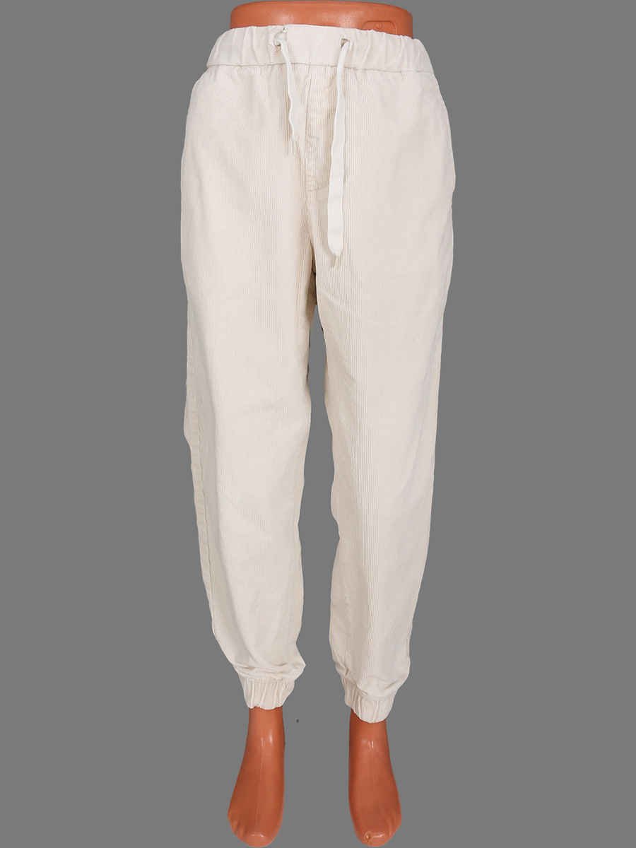 Есть катышки изнутри. Повреждение материала около шнурка на талии.