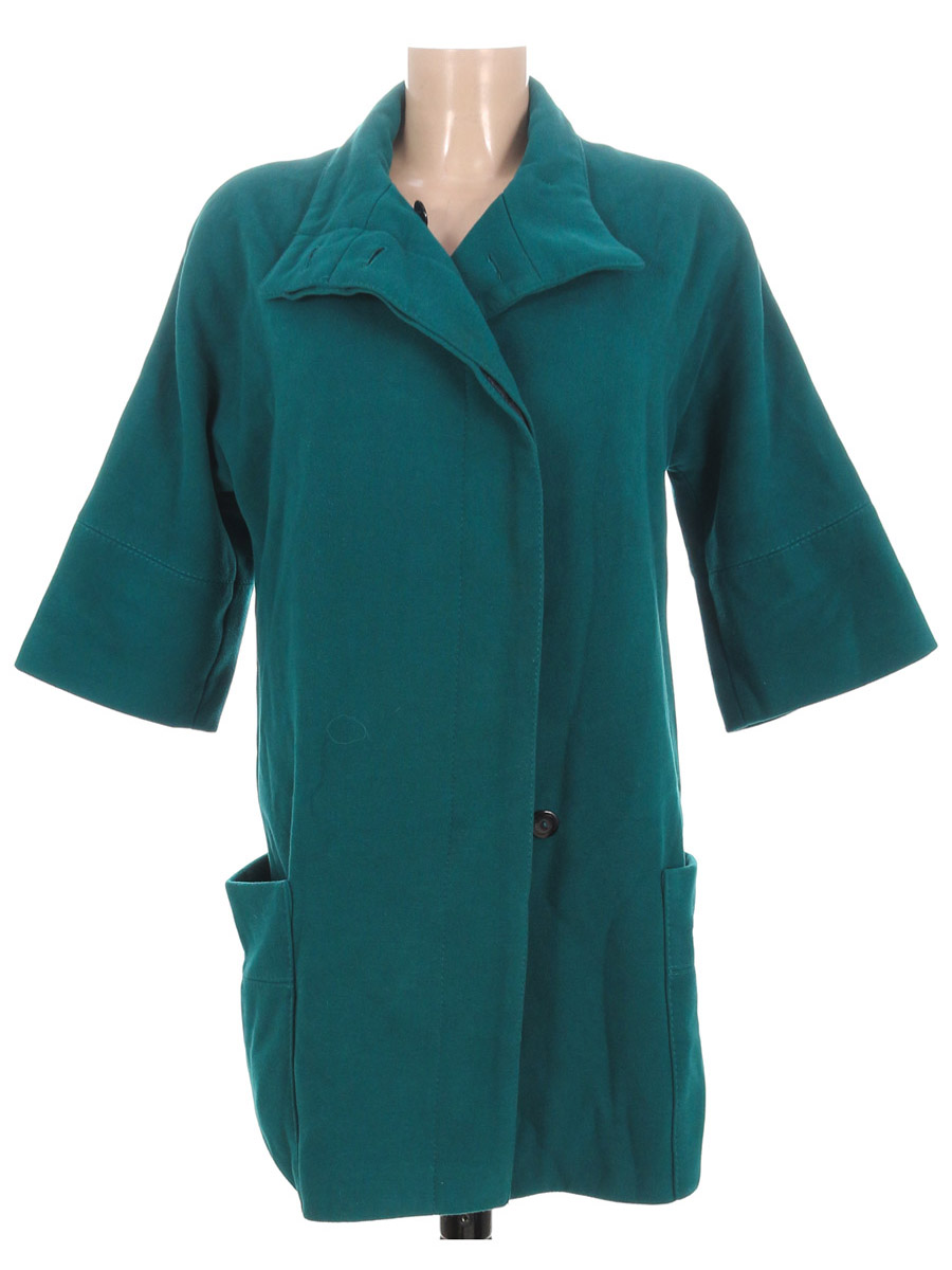 Маркировка на изделии отсутствует. Размер указан на основании замеров. Есть небольшие загрязнения (возможно отстираются). Местами лоснится ткань. По низу распустилась нить по шву на подкладке. Замер рукава указан от горловины. Есть немного катышек.