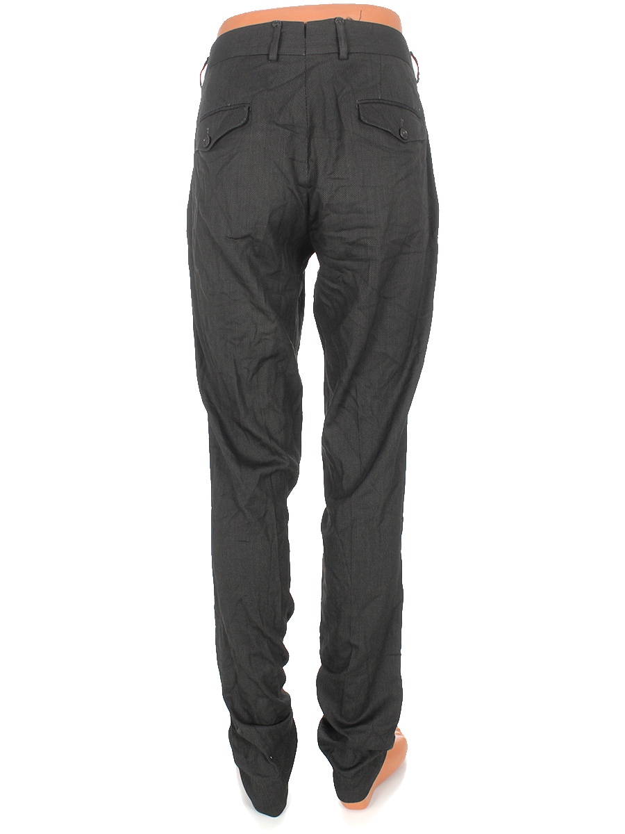 Ткань потускнела, местами лоснится, на петельках дырочки, сзади на поясе расходится ткань по шву. есть затяжка.