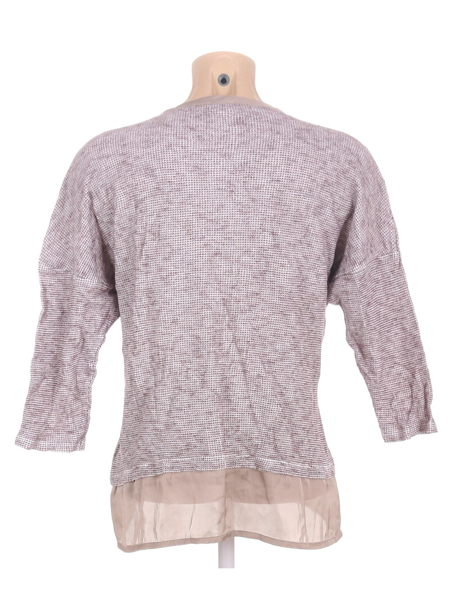 Замер рукава указан от горловины. Есть затяжки, в области подмышек немного пожелтел материал, ткань местами незначительно вытянулась.