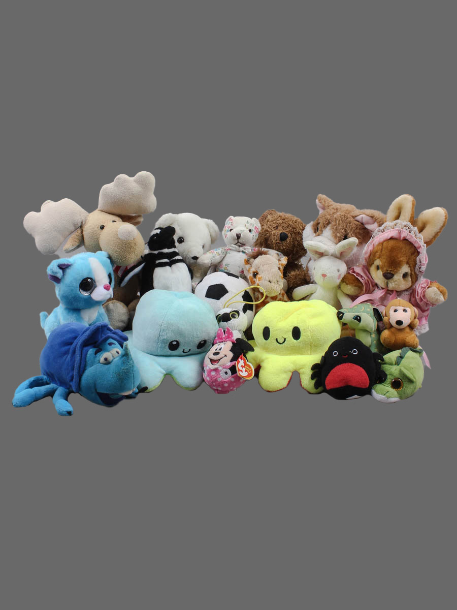 Мягкие игрушки и пластик.