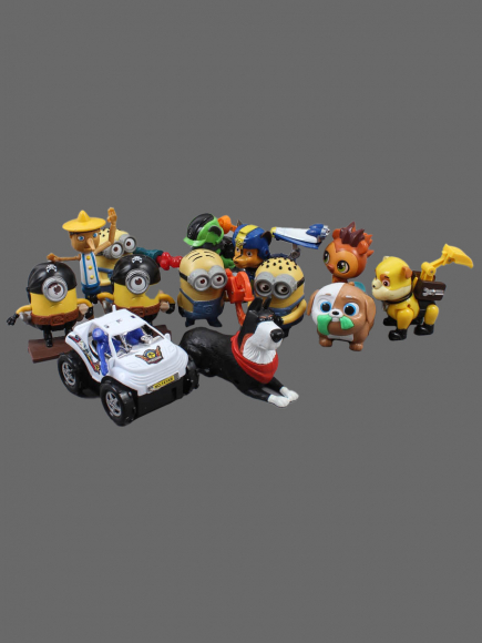 Мягкие игрушки и пластик.