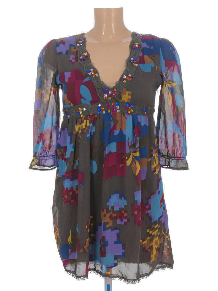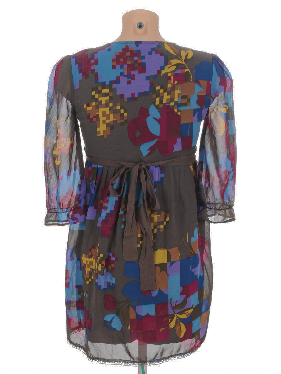 Местами отпали элементы декора. Есть устранимый дефект – маленькая дырочка (2 мм) сбоку около молнии. Затяжка на внутренней стороне изделия. Небольшие загрязнения на поясе (возможно отстираются).