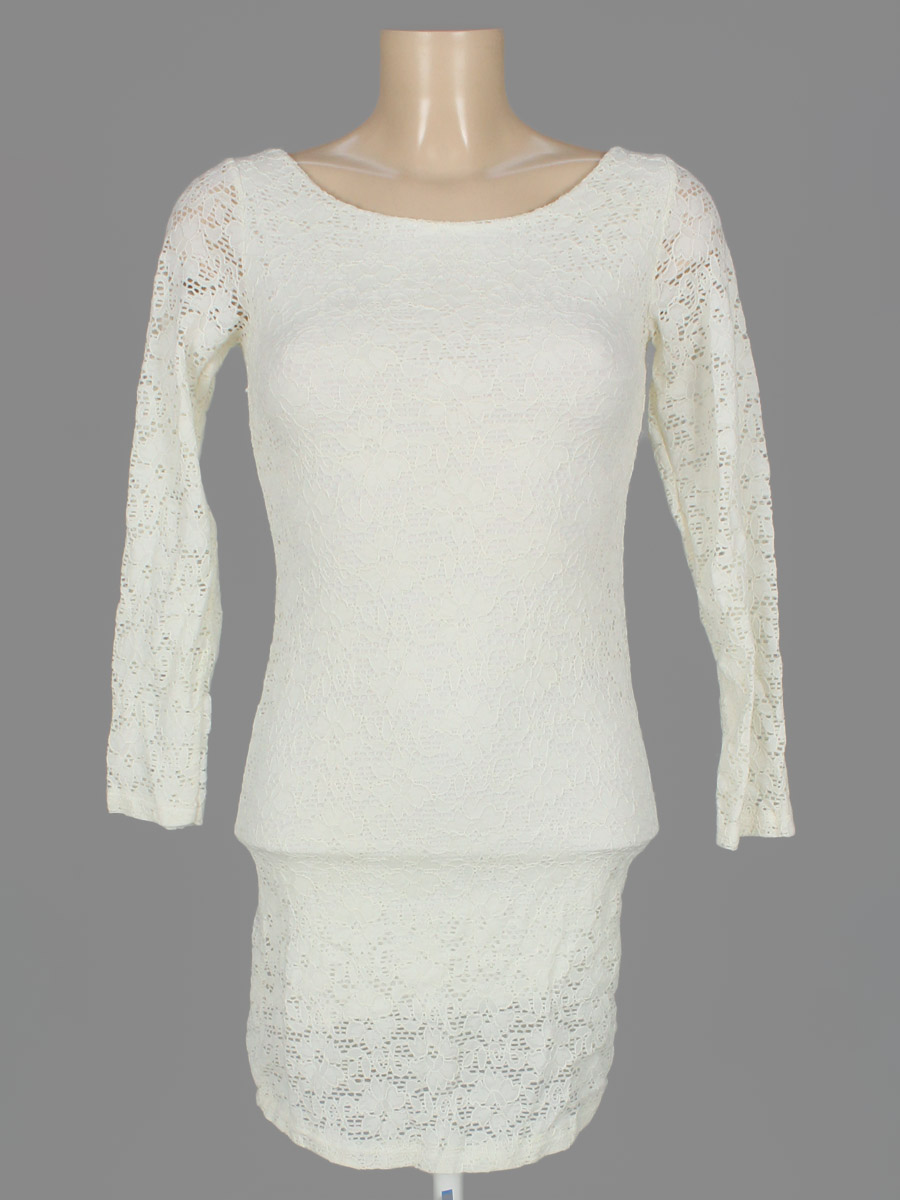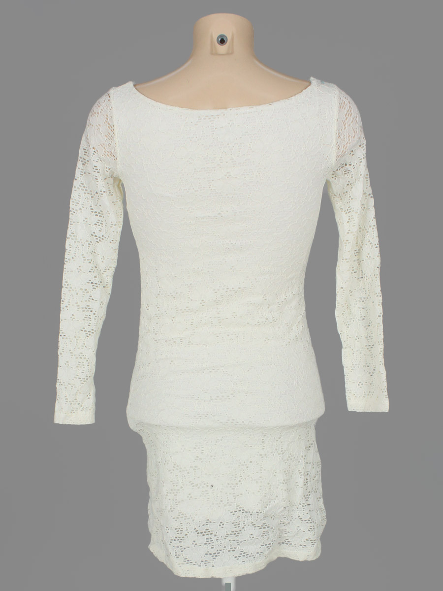 Маркировка на изделии отсутствует. Размер указан на основании замеров (40-42). Есть затяжки. Молочный оттенок.