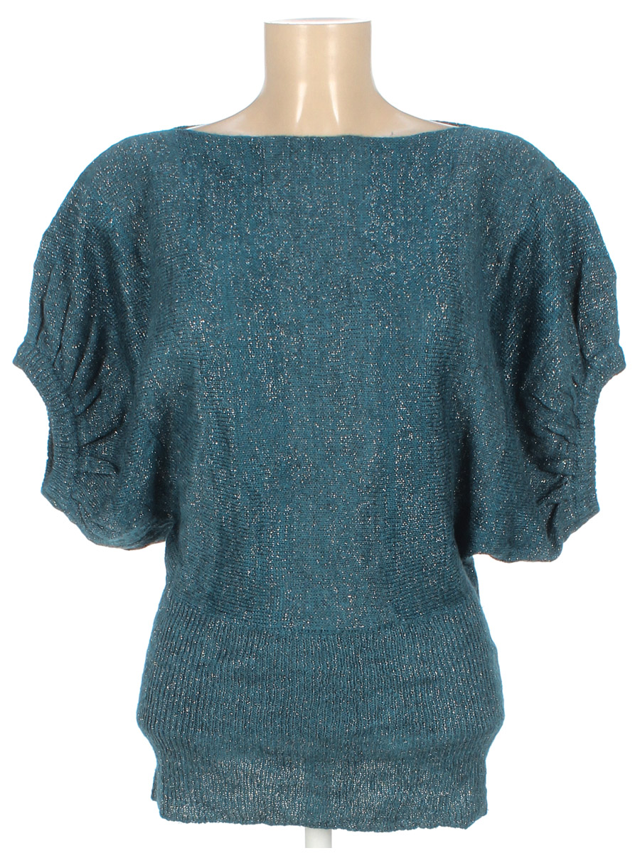 Маркировка на изделии отсутствует. Размер указан на основании замеров. Ткань немного вытянулась. Замер рукава указан от горловины. Есть затяжки.