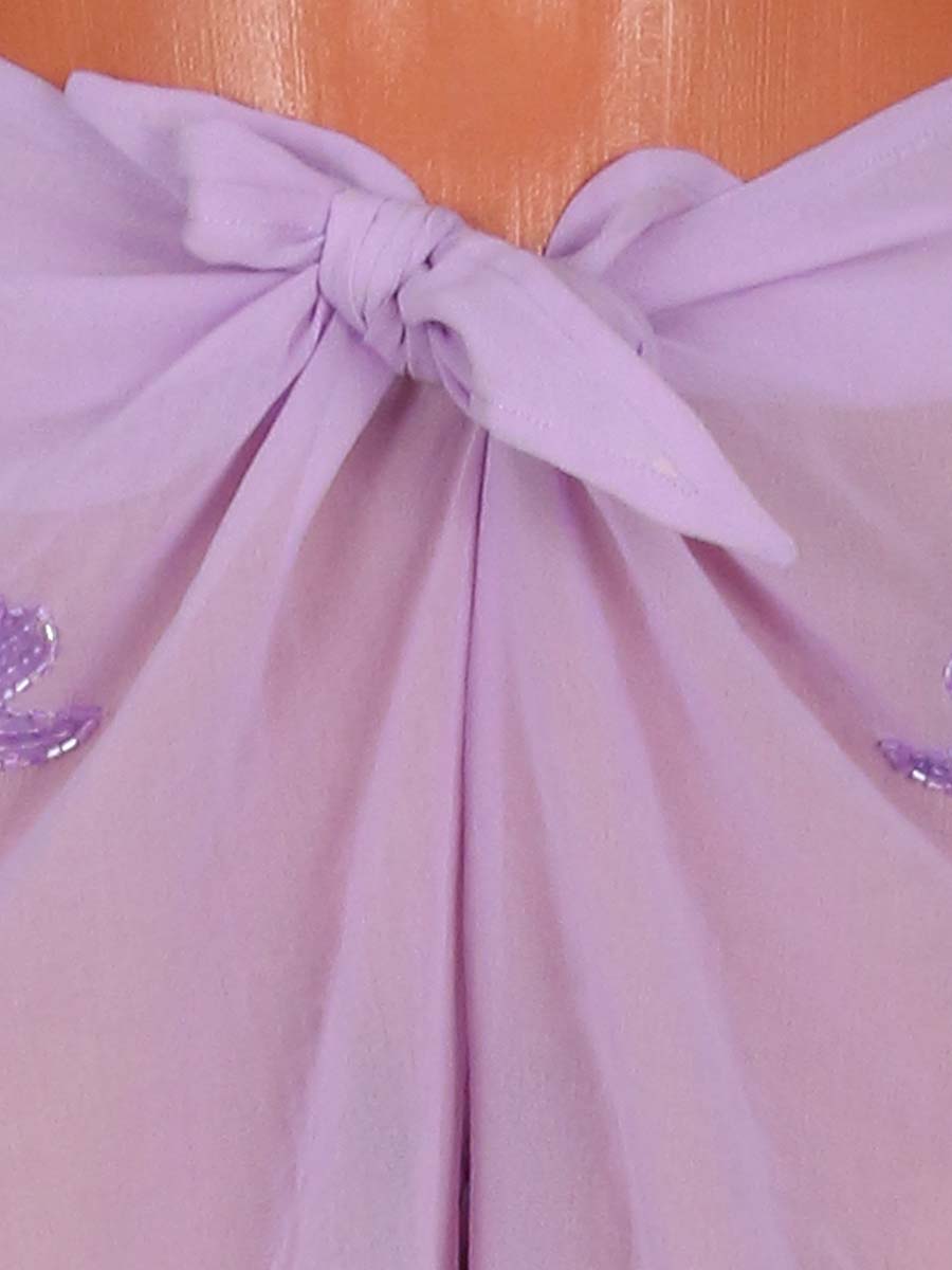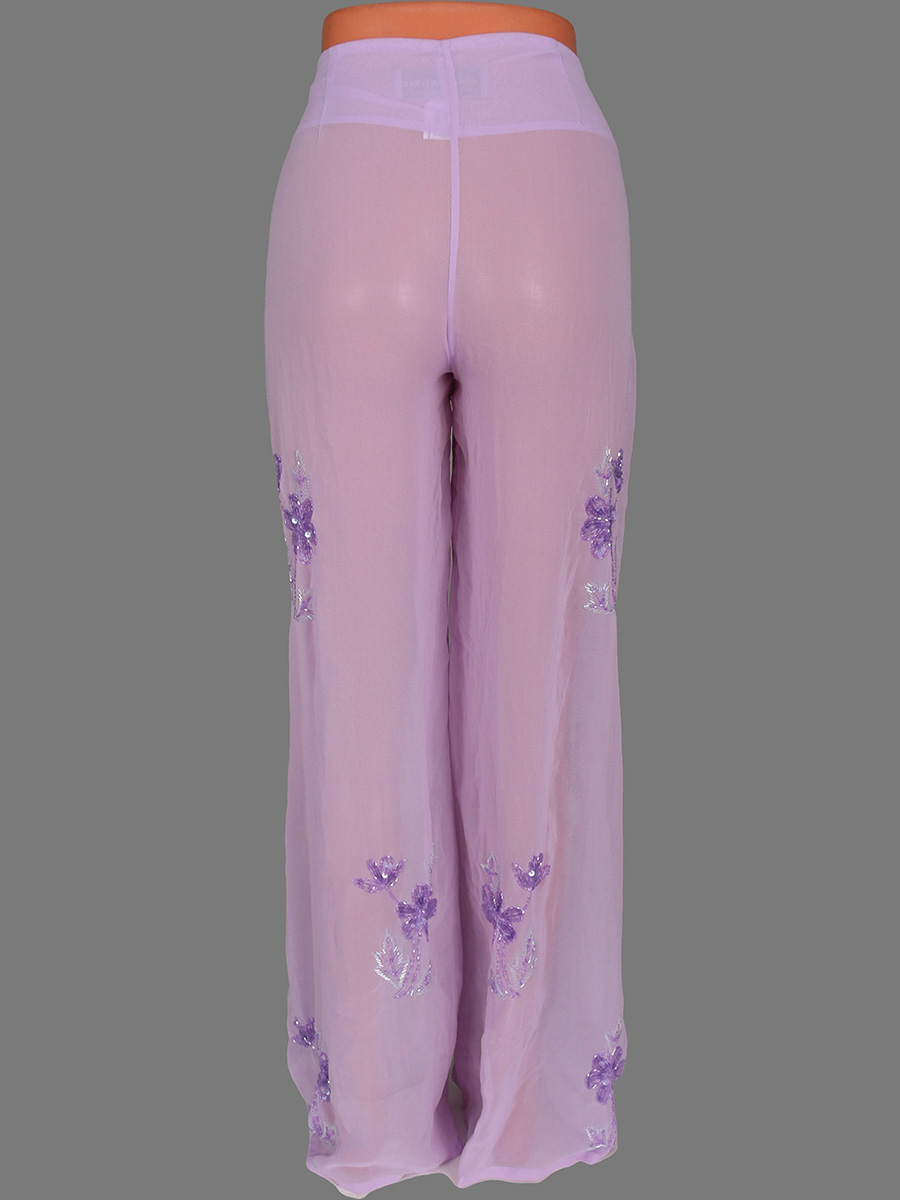 Брюки пляжные. Прозрачные. Между штанин немного расходится ткань по шву, на декоре распускаются нити.