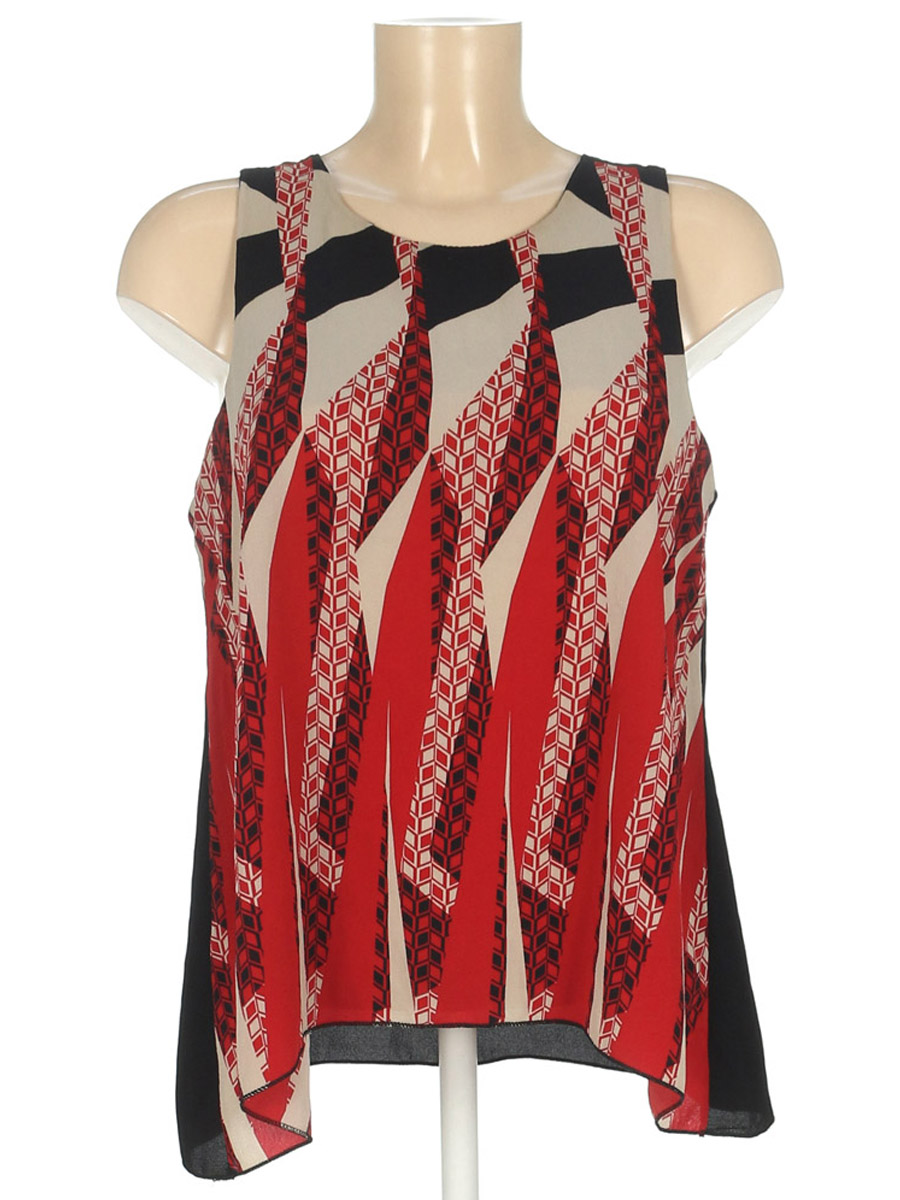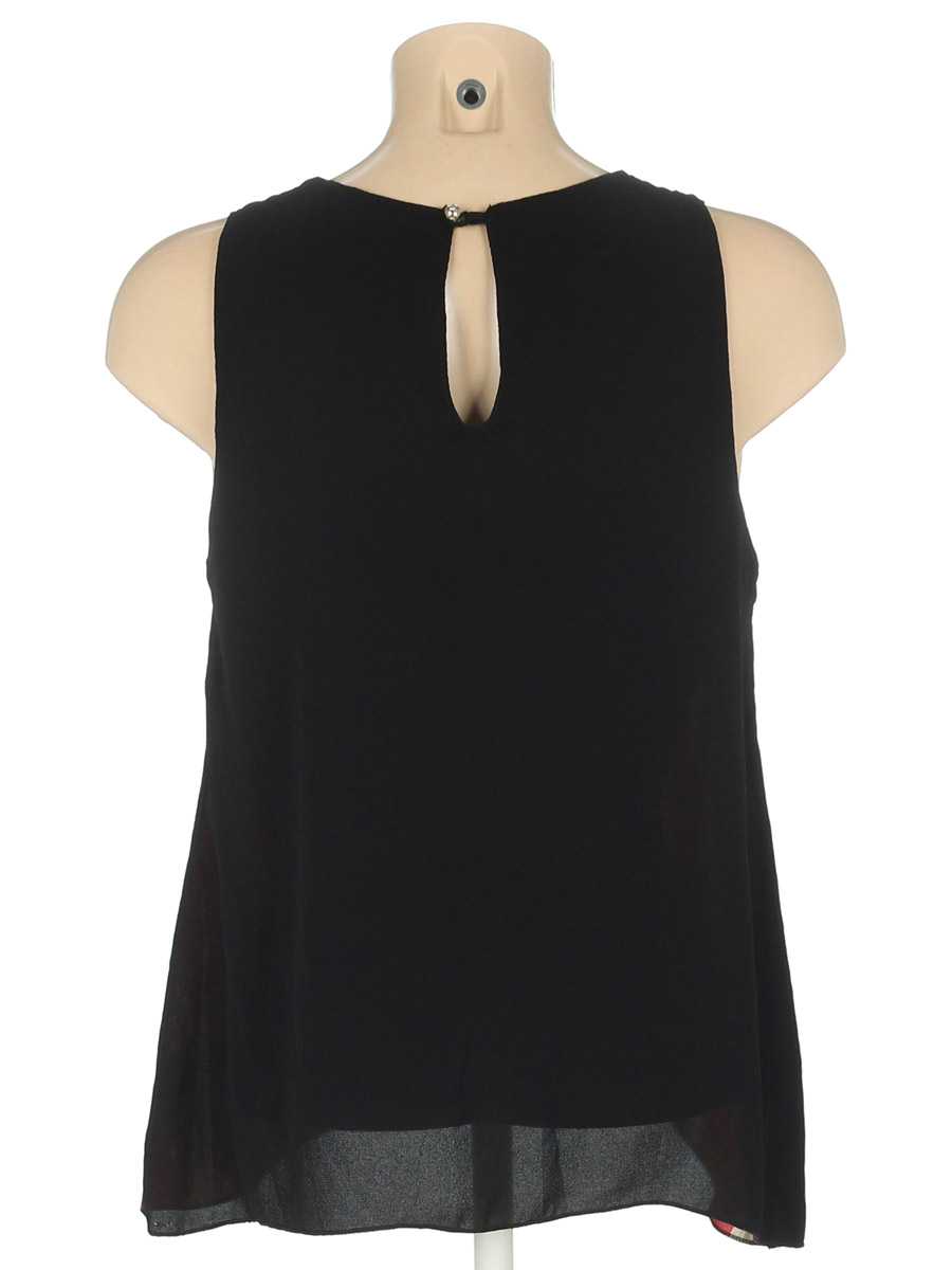 Маркировка на изделии отсутствует. Размер указан на основании замеров (44-46). На спине есть маленькая дырочка, немного потускнел цвет.