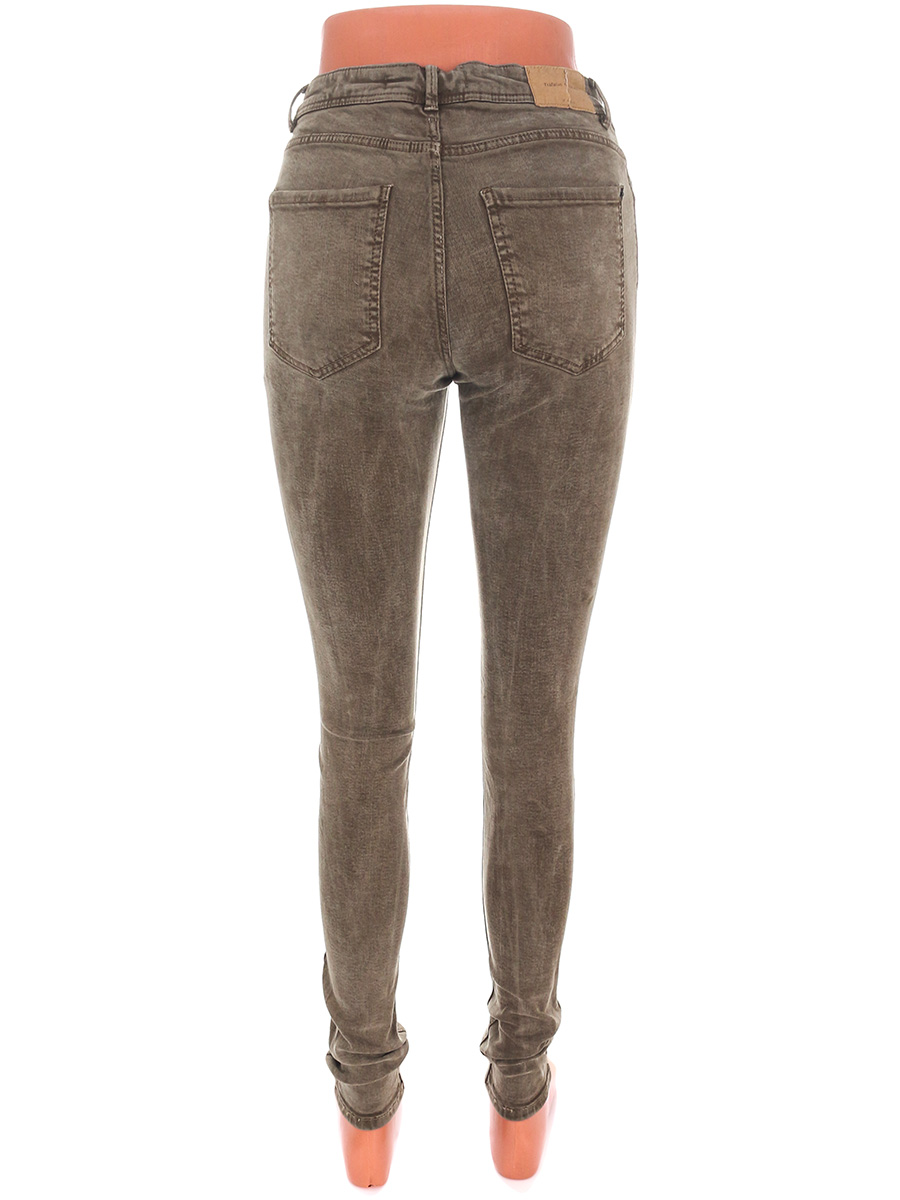 Сзади на поясе порван ярлык. Ткань местами выцвела, вытянулась, лоснится, есть потертости материала. По низу распускается строчка по шву.